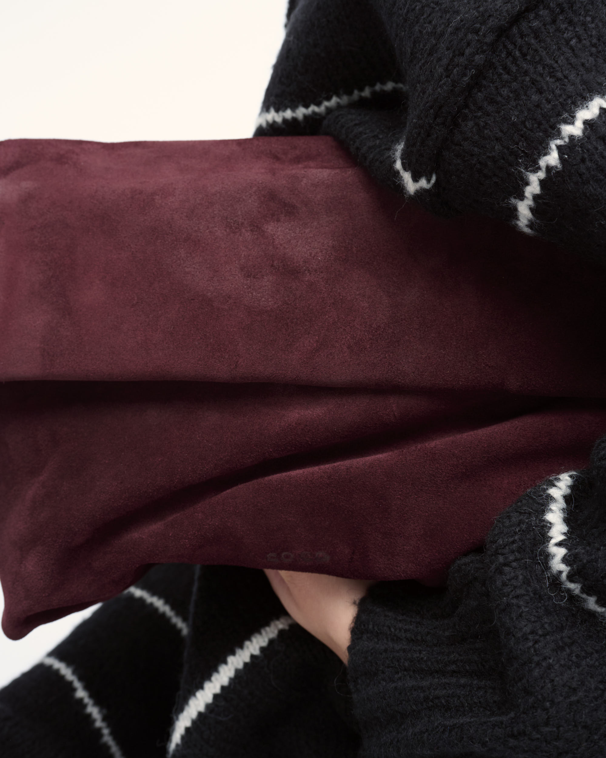 תיק מעטפה מזמש, עם בטנת כותנה, סגירה עם לחצנית נסתרת. ורצועת כתף מתכווננת.