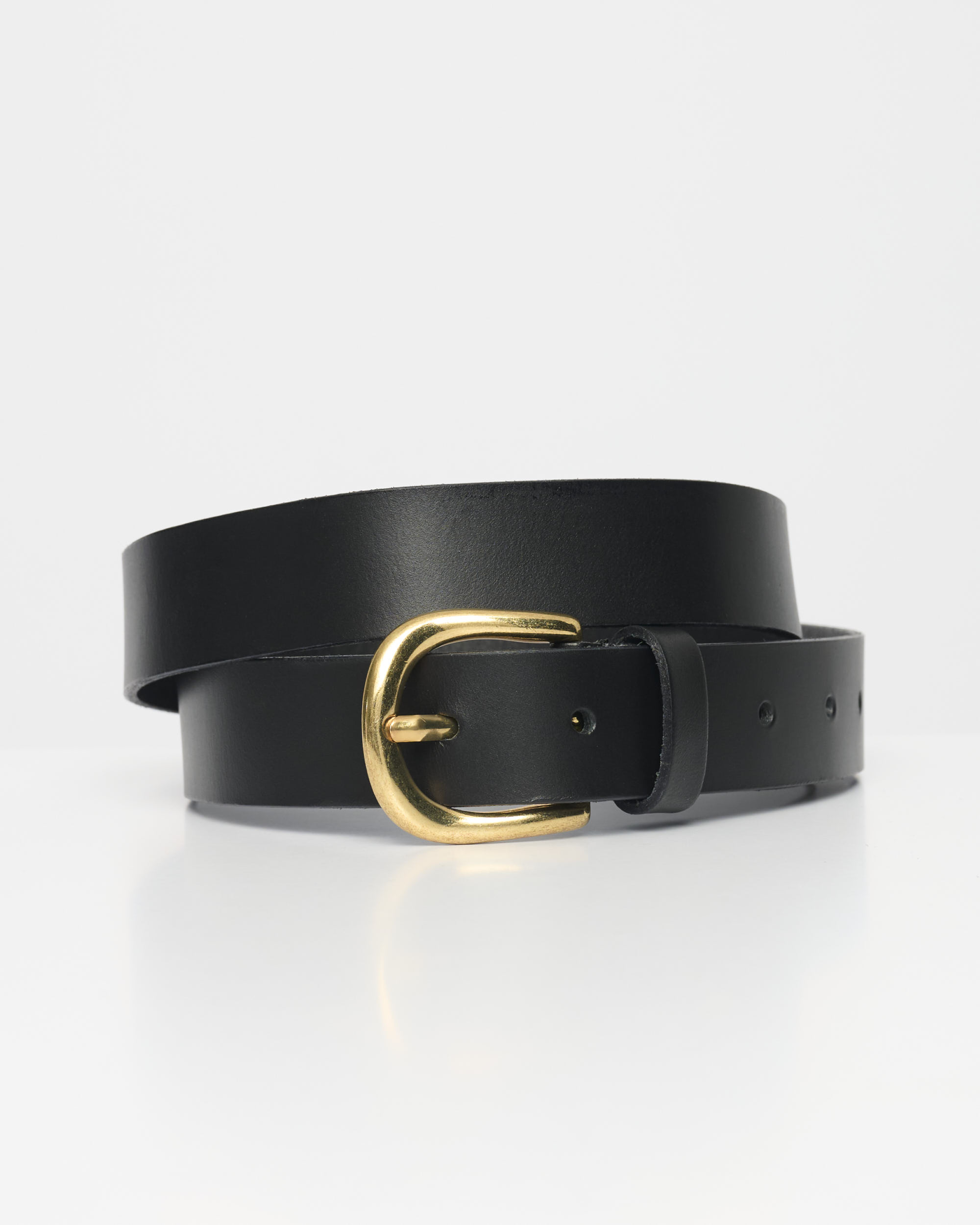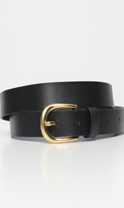 חגורת עור, רוחב 3 ס”מ עם אבזם מוזהב.