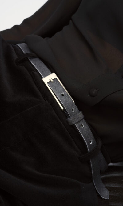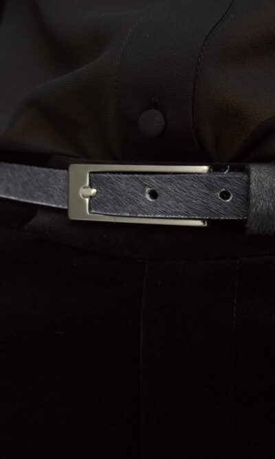 חגורת עור, רוחב 1.5 ס”מ עם אבזם מוזהב.