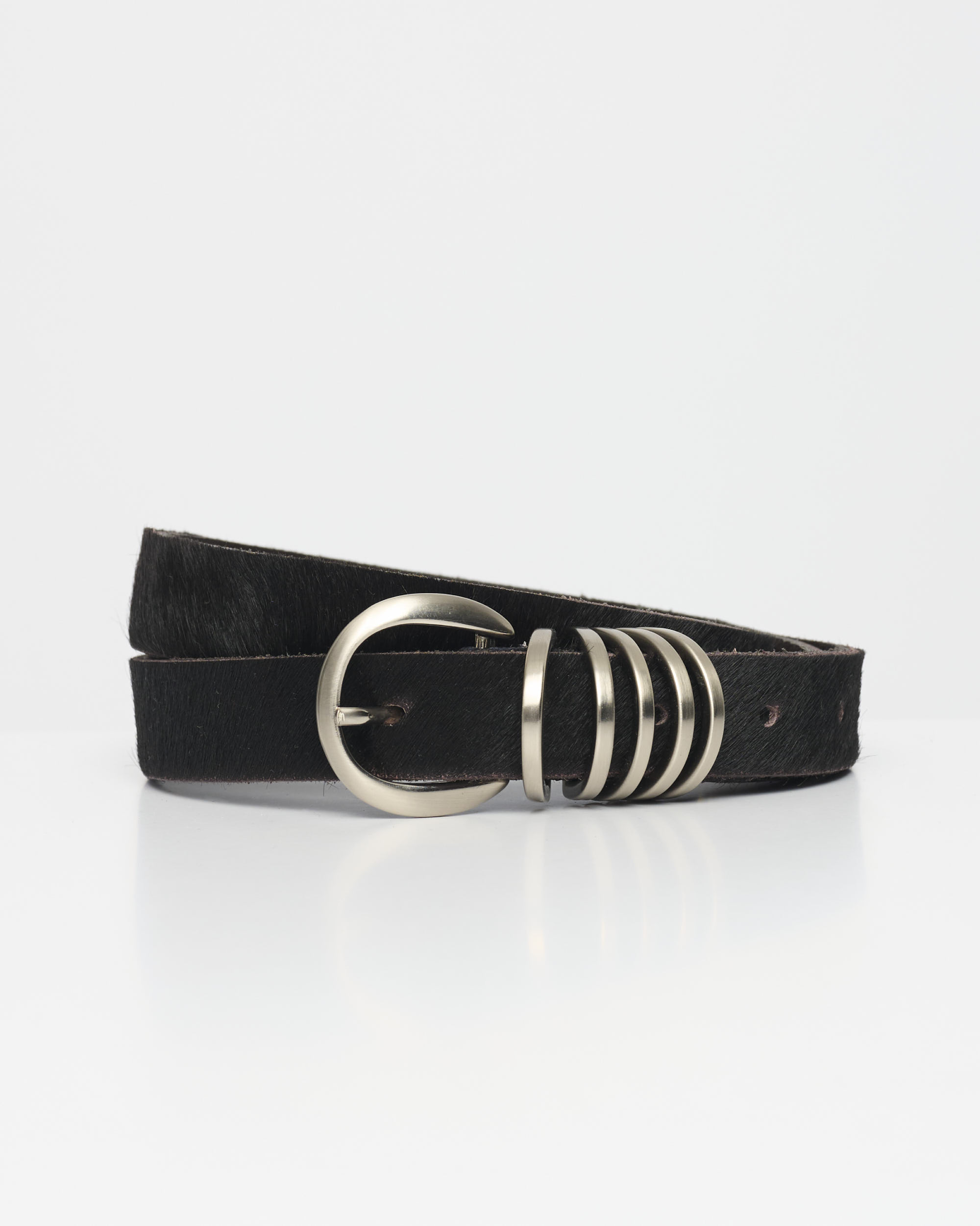 חגורת עור פוני, רוחב 2.5 ס”מ עם אבזם כסוף.