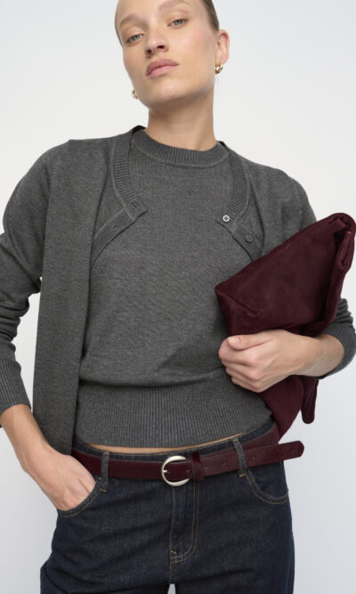דוגמנית 176 ס”מ, לובשת מידה SM • הרכב בד עור