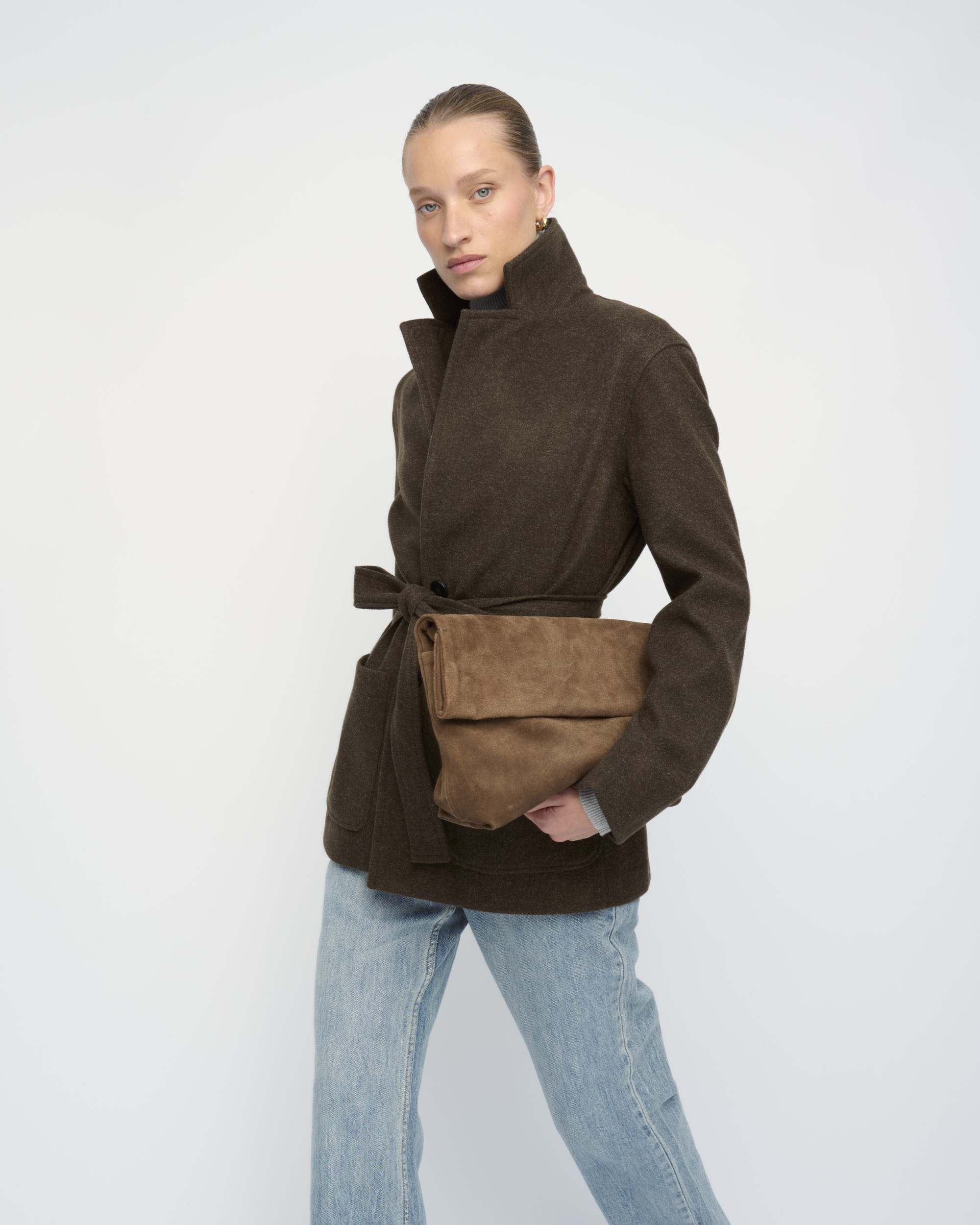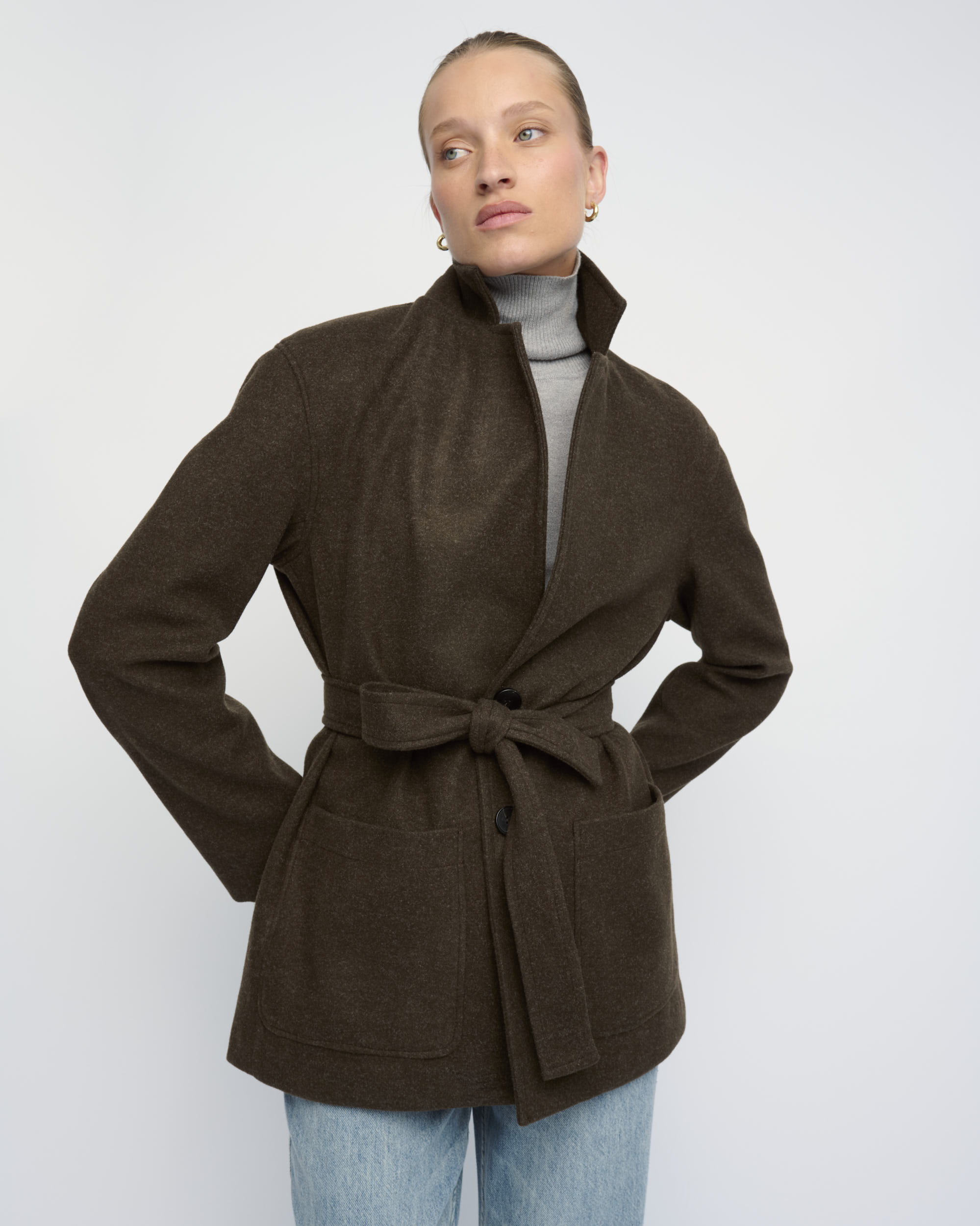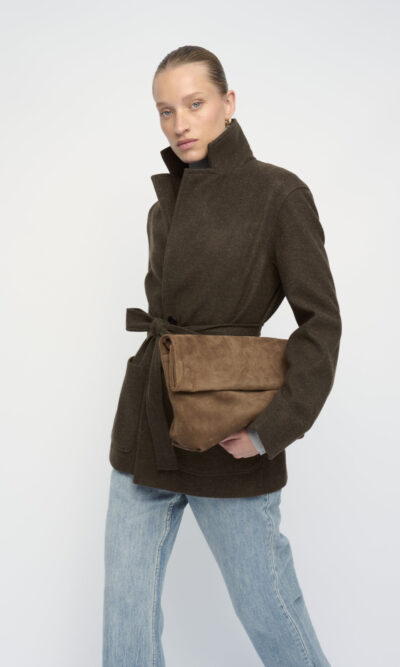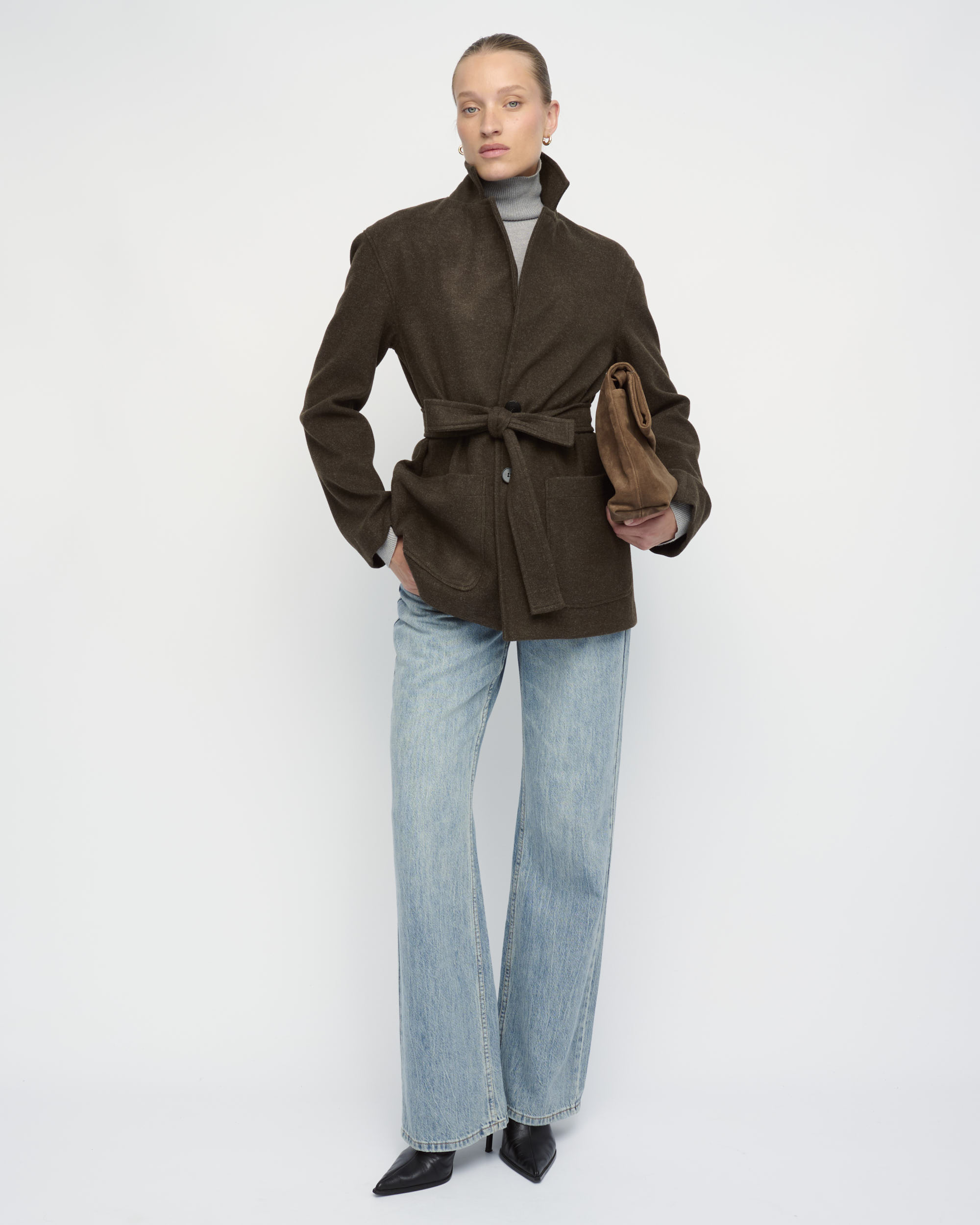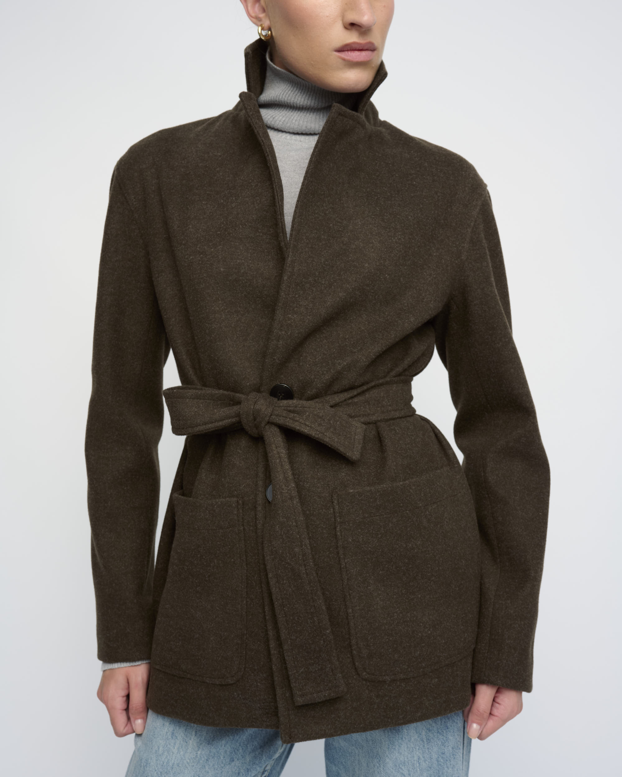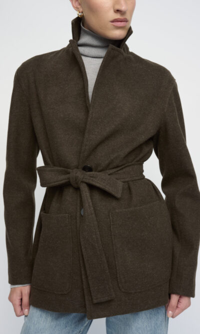 גקט מג’רסי במגע רך.צללית נינוחה. כיסים גדולים בחזית, עם חגורת קשירה.