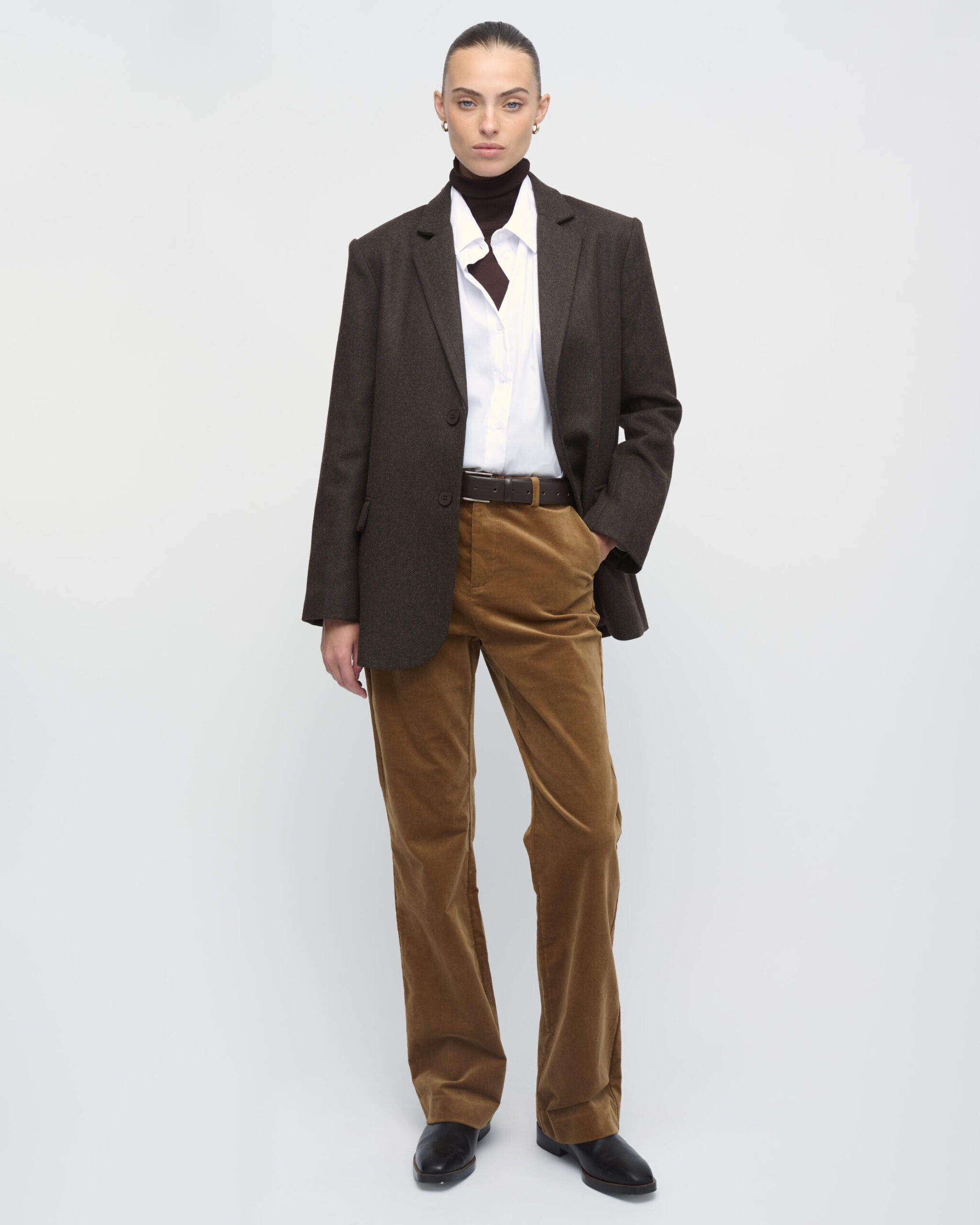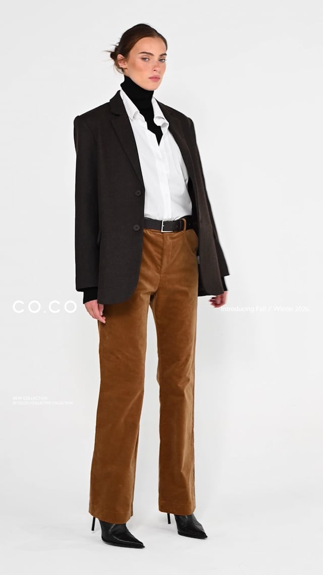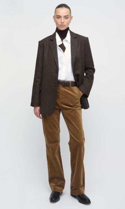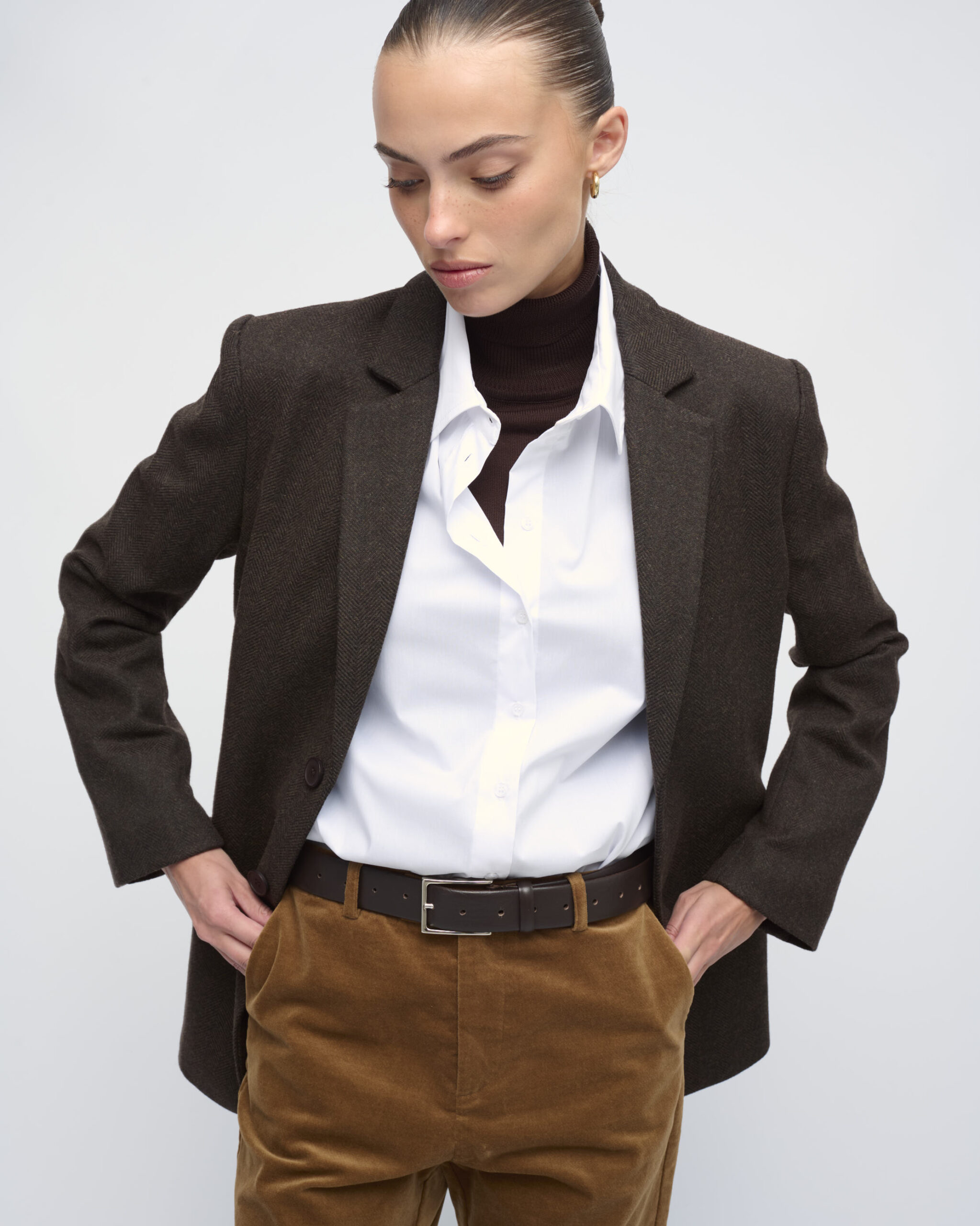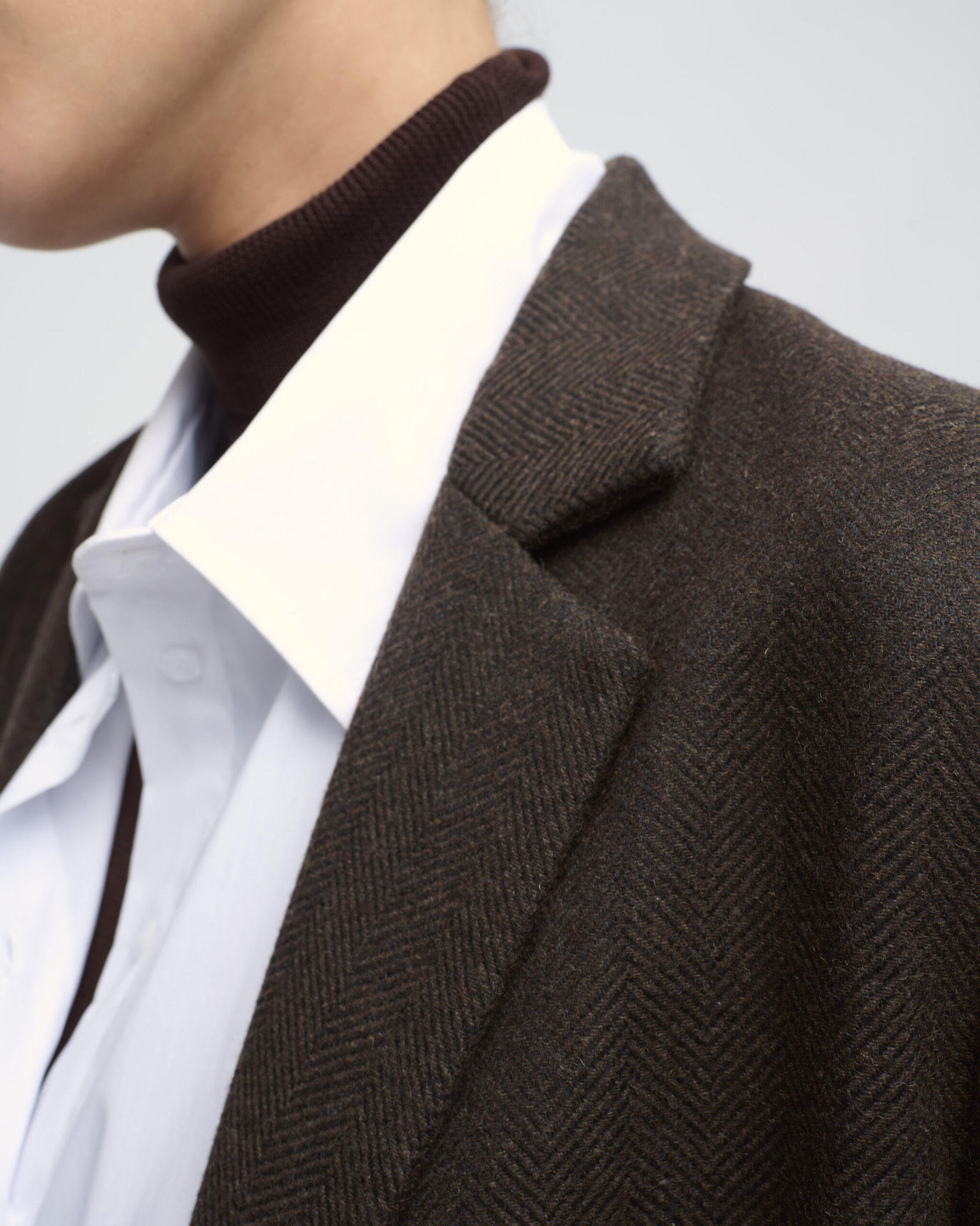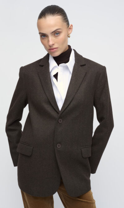 דוגמנית 176 ס”מ, לובשת מידה S • הרכב בד 30% צמר 70% פוליאסטר