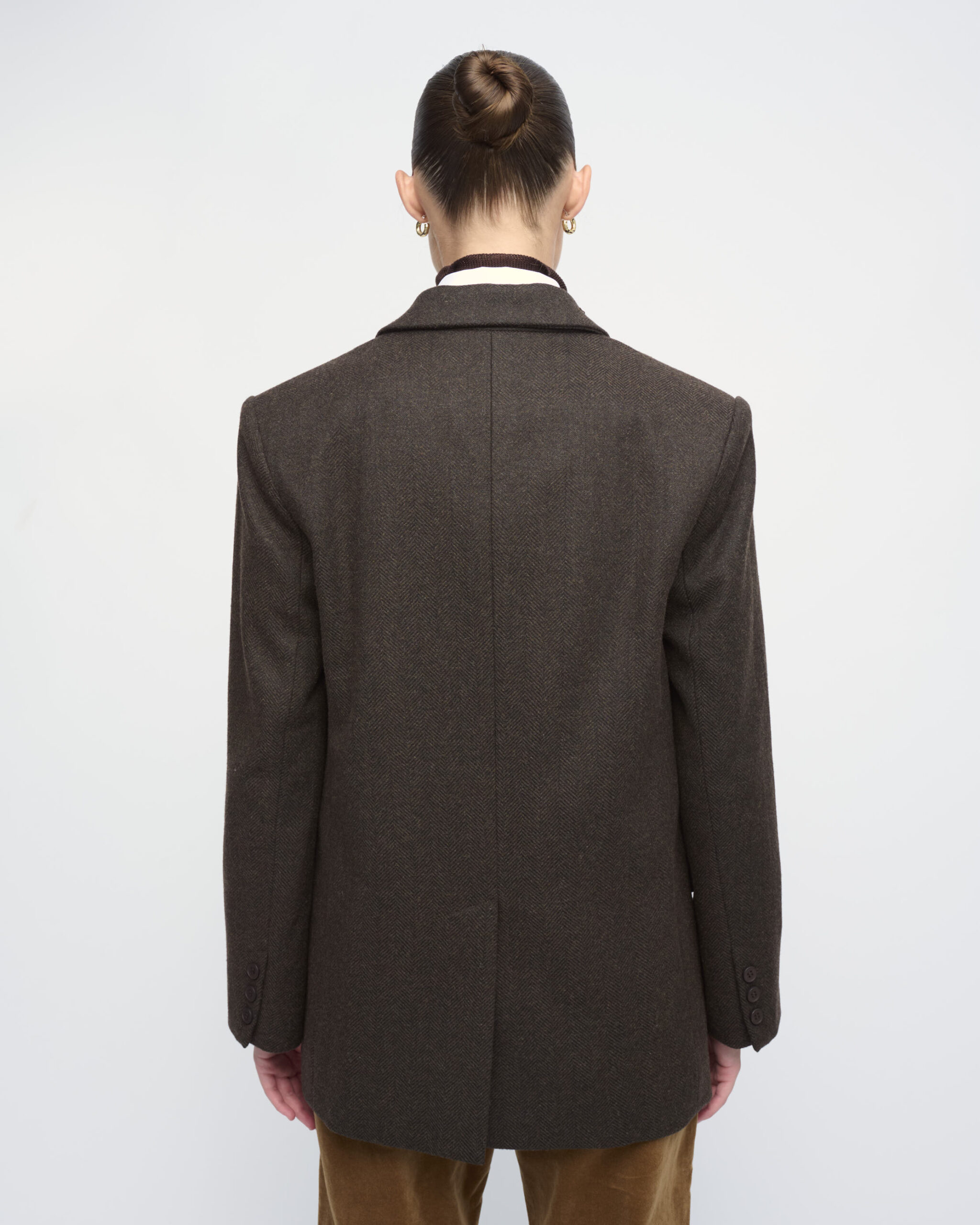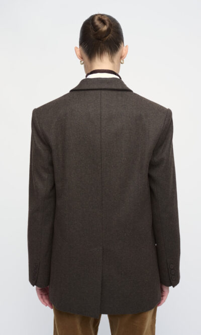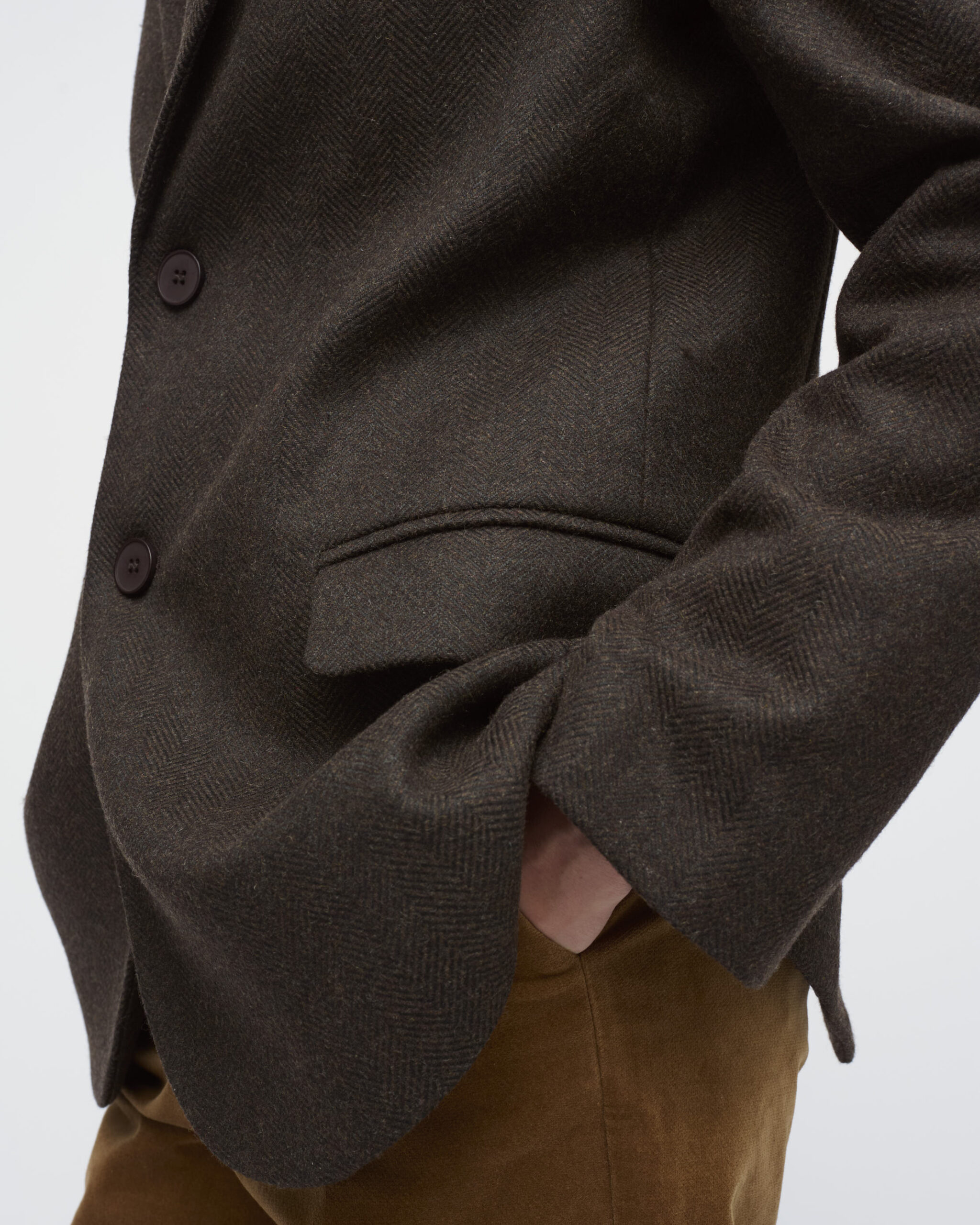 ג’קט צמר באריגת אדרת דג. צללית קלאסית. סגירת כפתורים בחזית.
