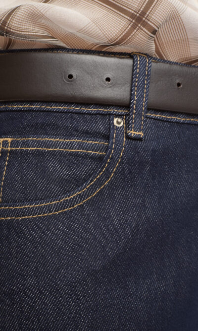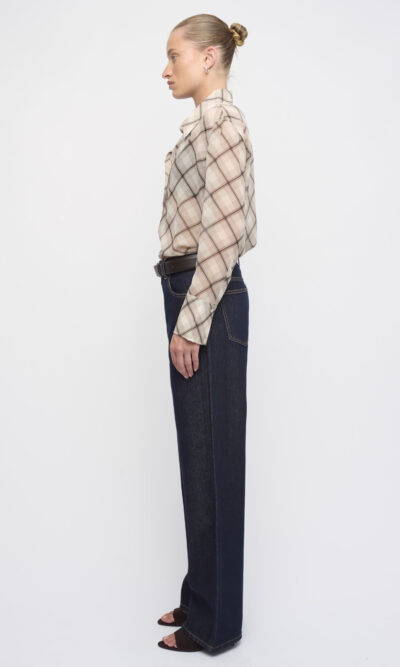 ג’ינס WIDE LEG MID WAIST, צללית רגל רחבה עיצוב חמישה כיסים, צבע כחול כהה.
