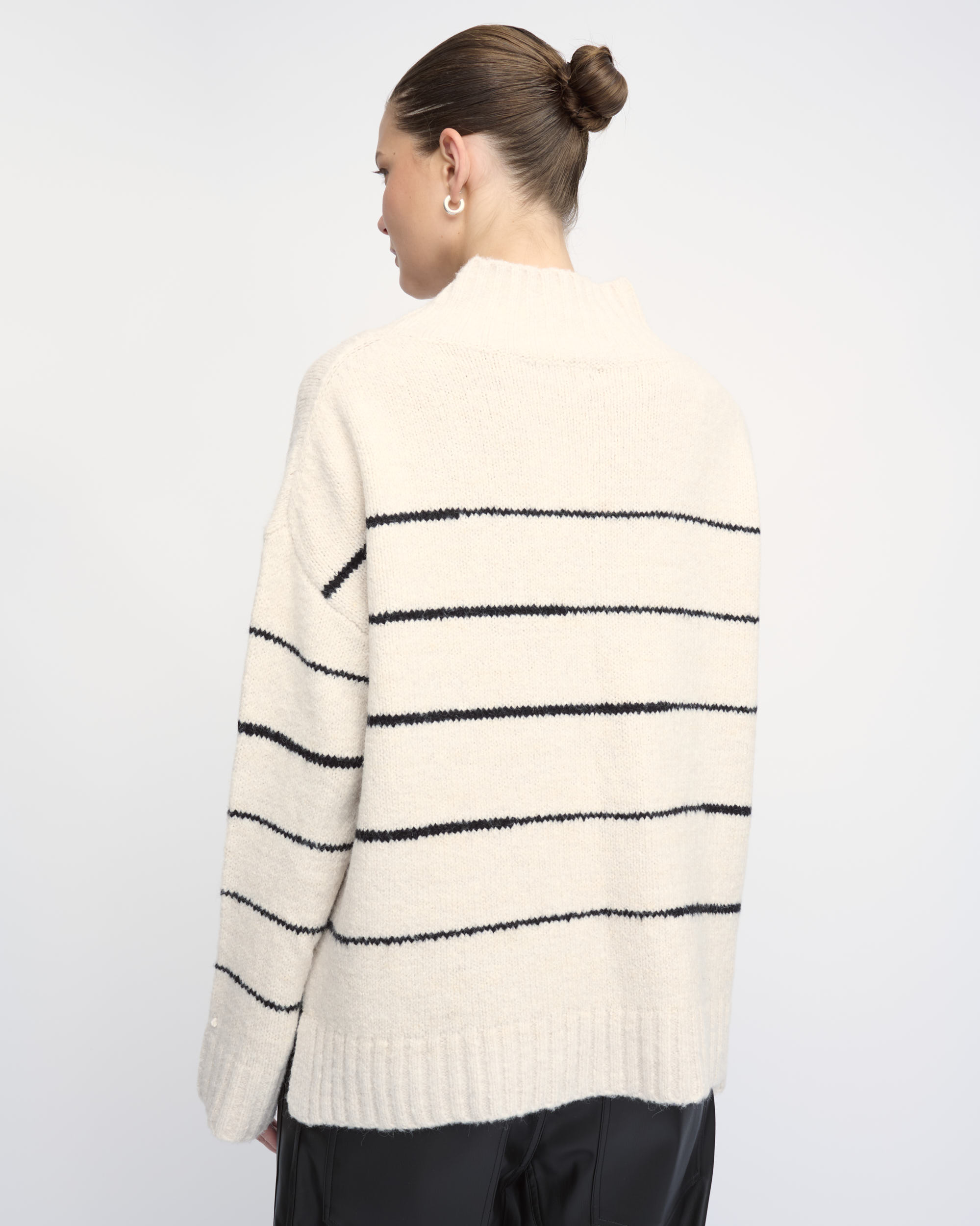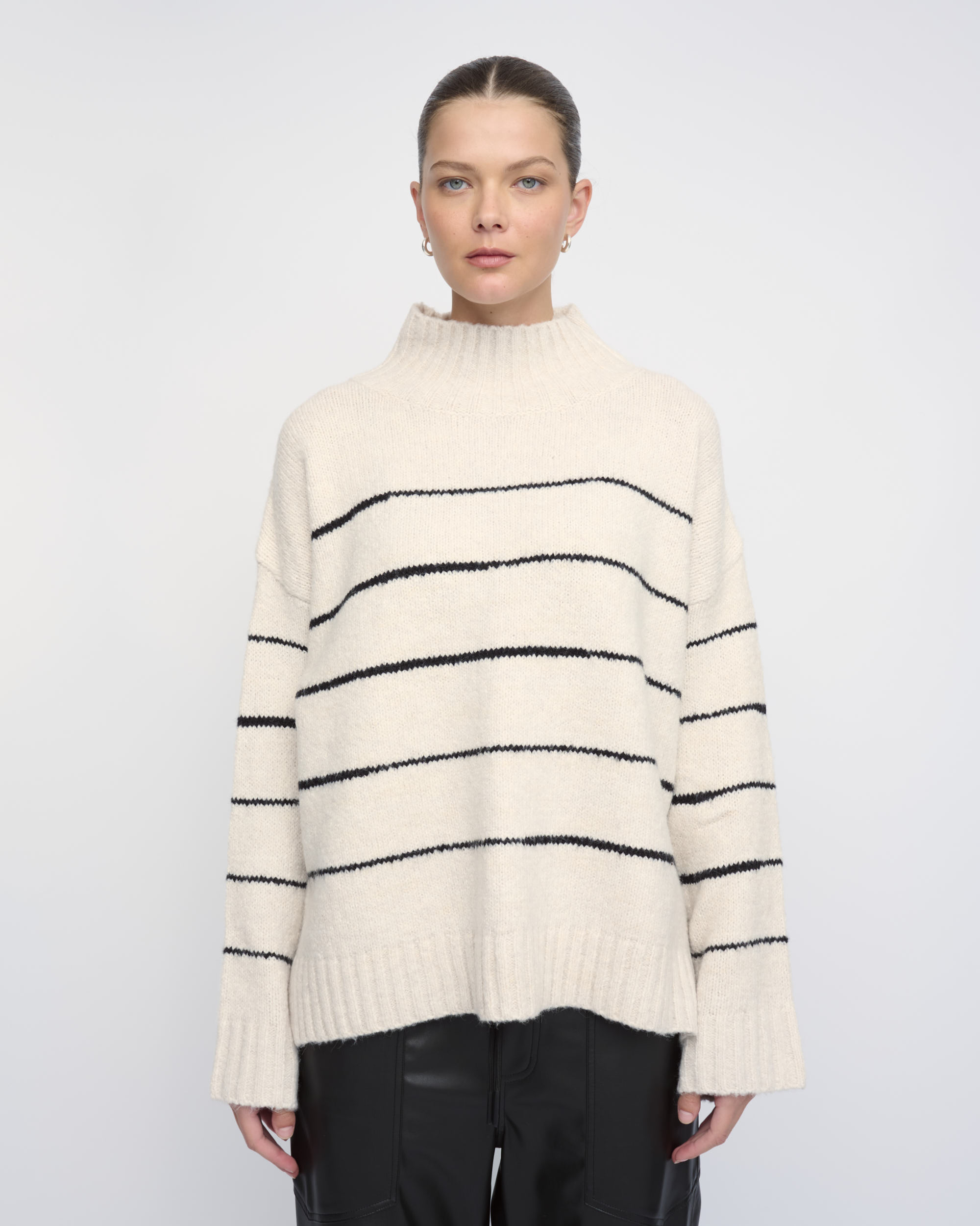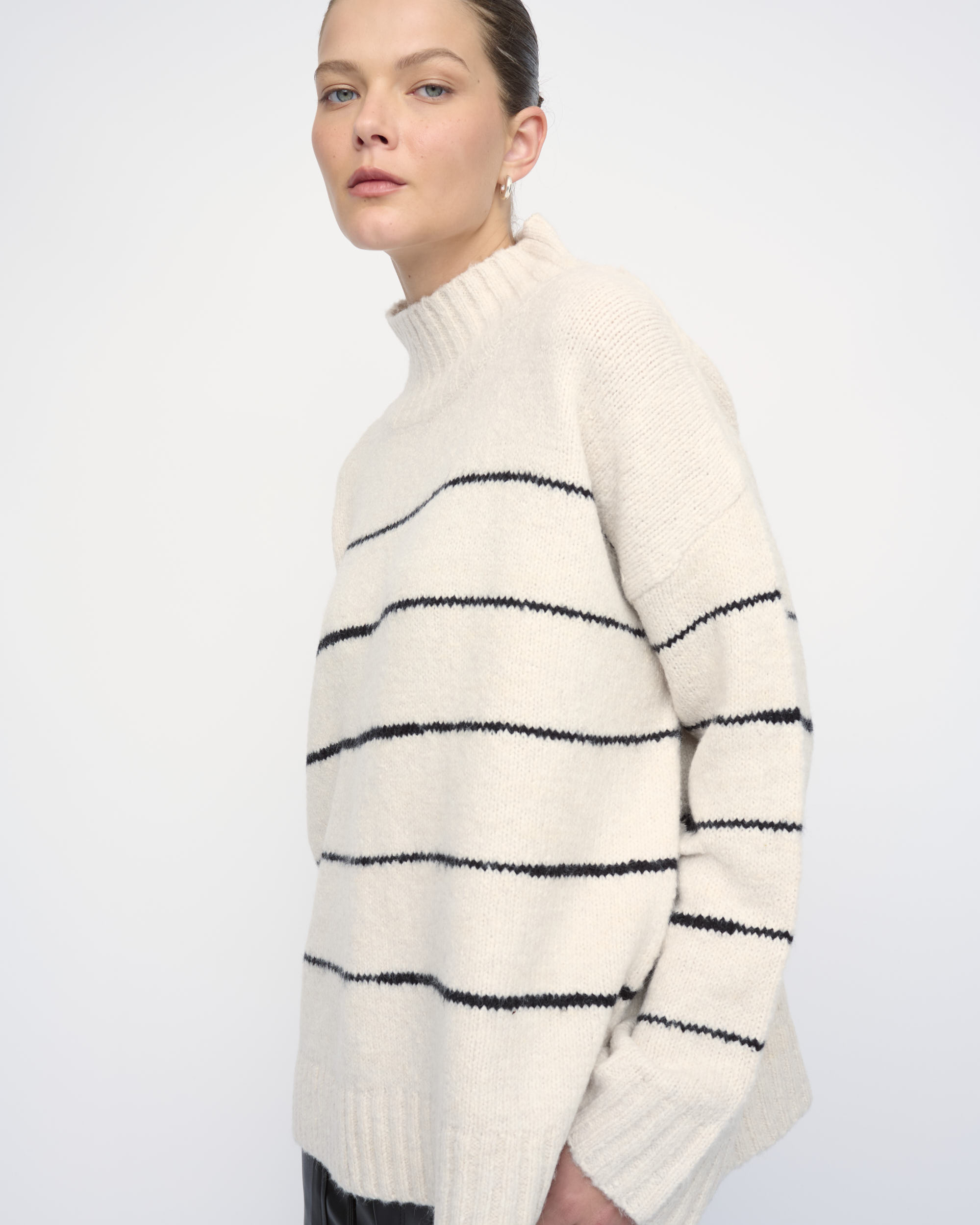 סריג בצללית בוקסי. סרוג בדוגמת פסים, עם צוארון גולף.