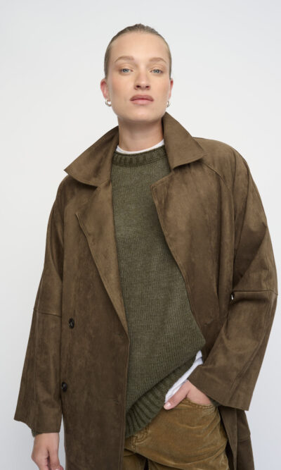 דוגמנית 176 ס”מ, לובשת מידה OS • הרכב בד 65% אקריליק 25% נילון 10% צמר