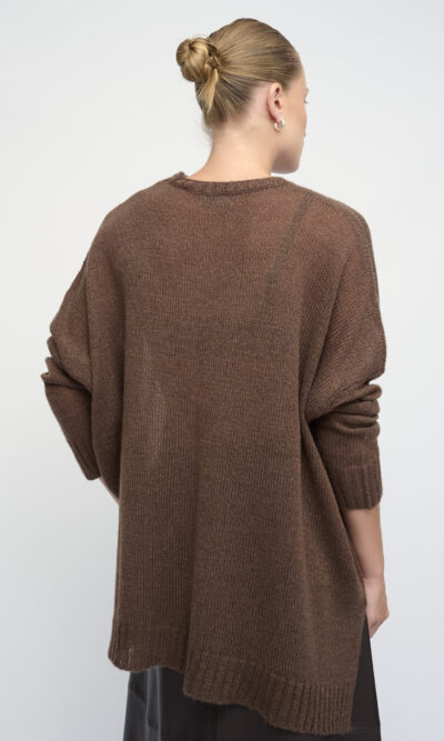 סריג בצללית אוברסייז מרובעת, עם מחשוף עגול.