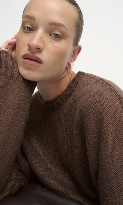 דוגמנית 176 ס”מ, לובשת מידה OS • הרכב בד 65% אקריליק 25% נילון 10% צמר