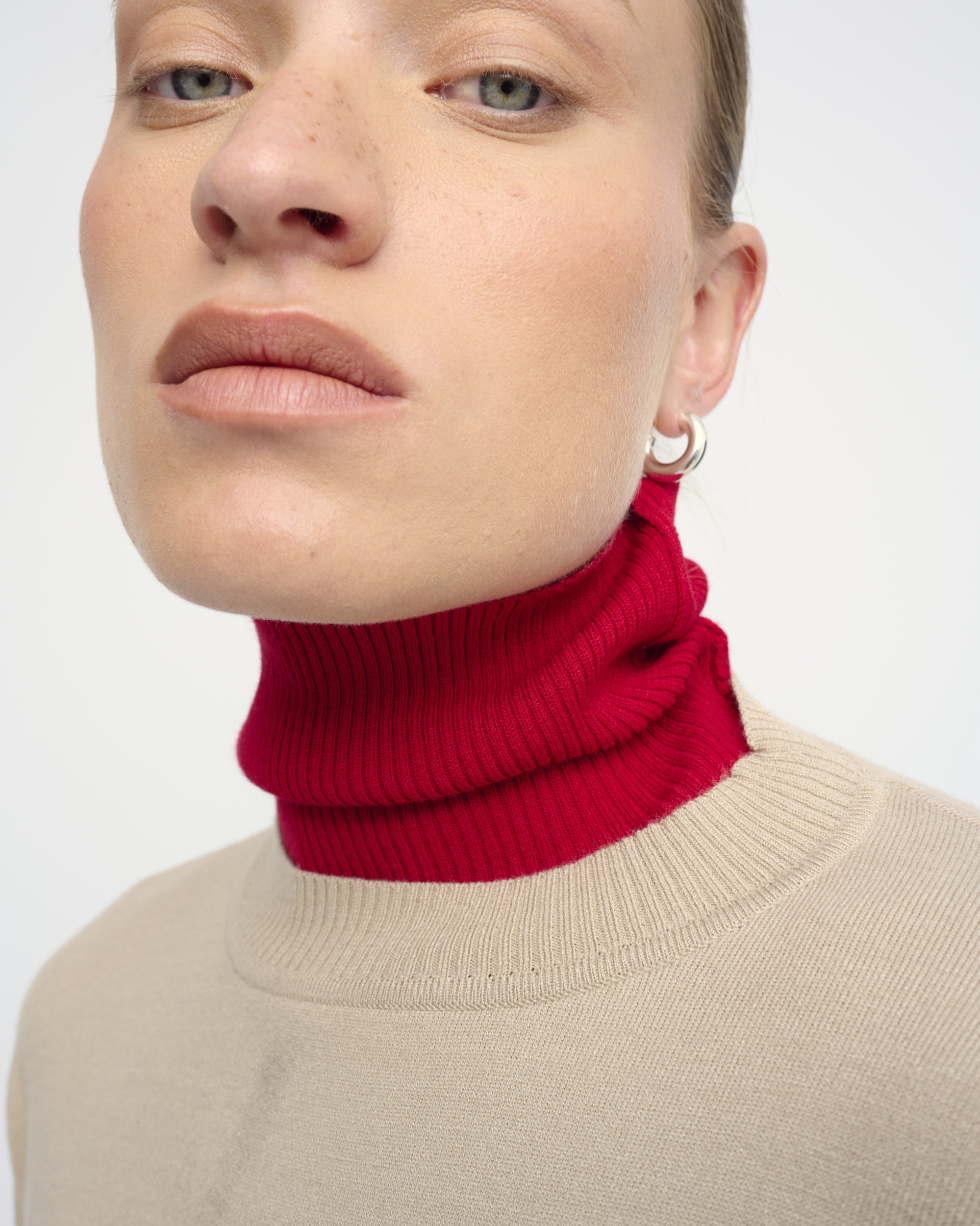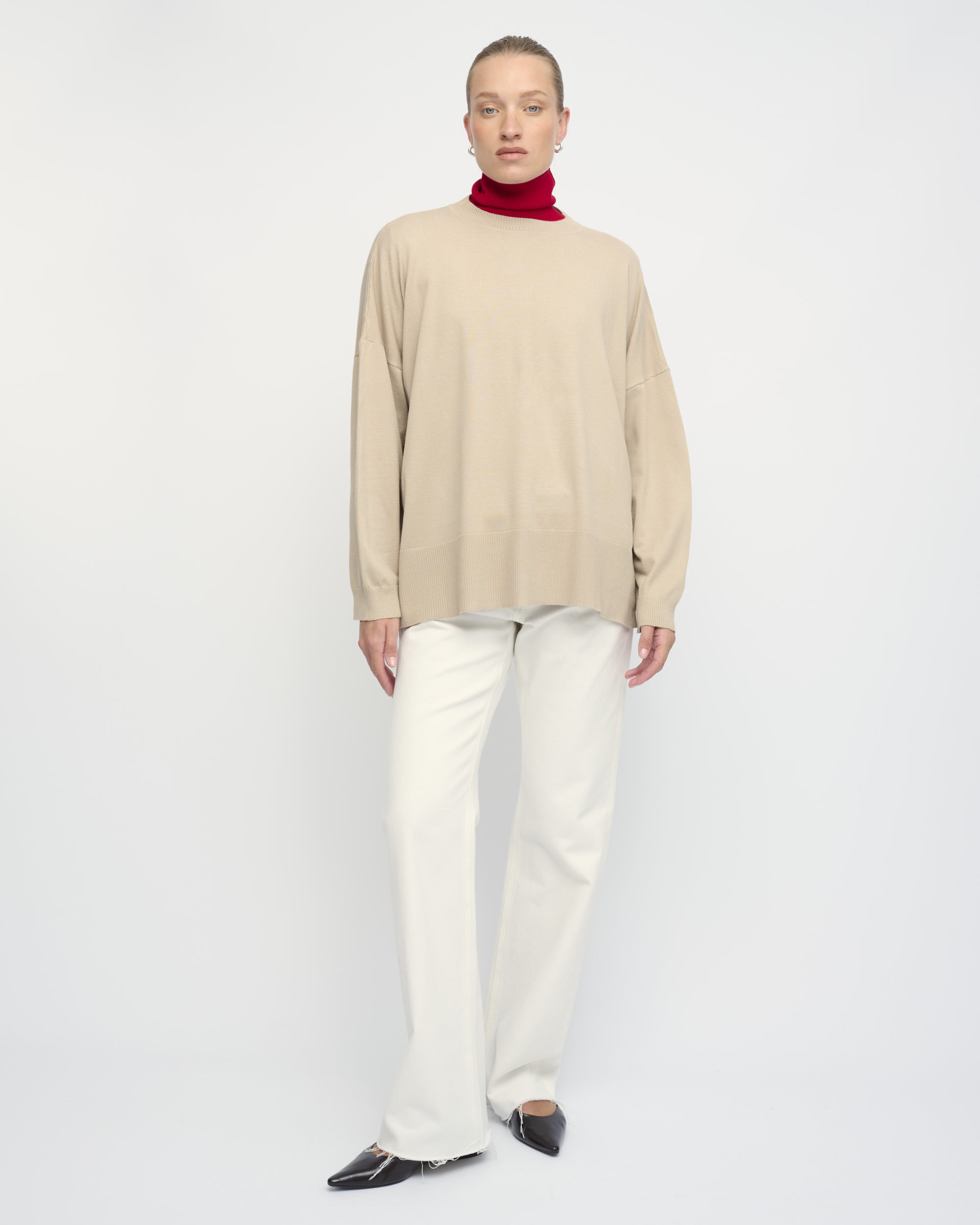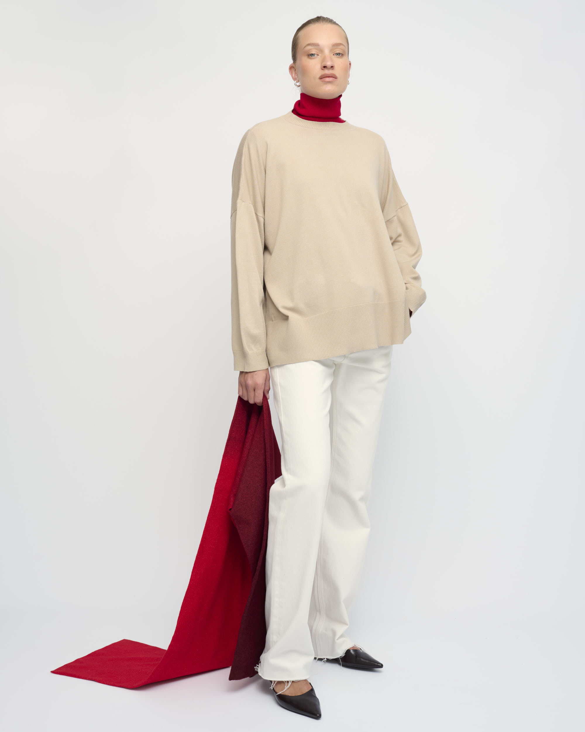 סריג ויסקוזה בצללית אוברסייז מרובעת. עם מחשוף עגול.