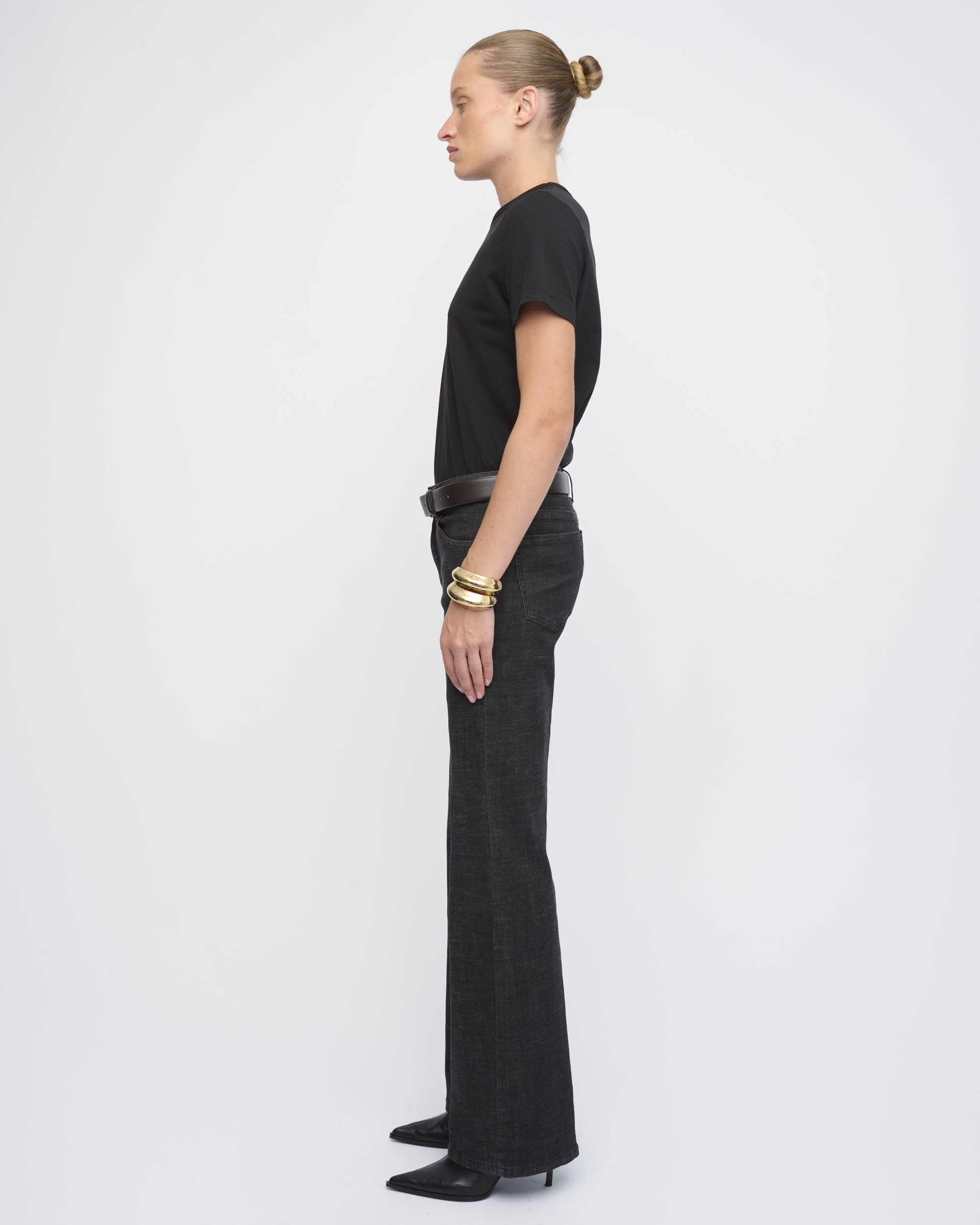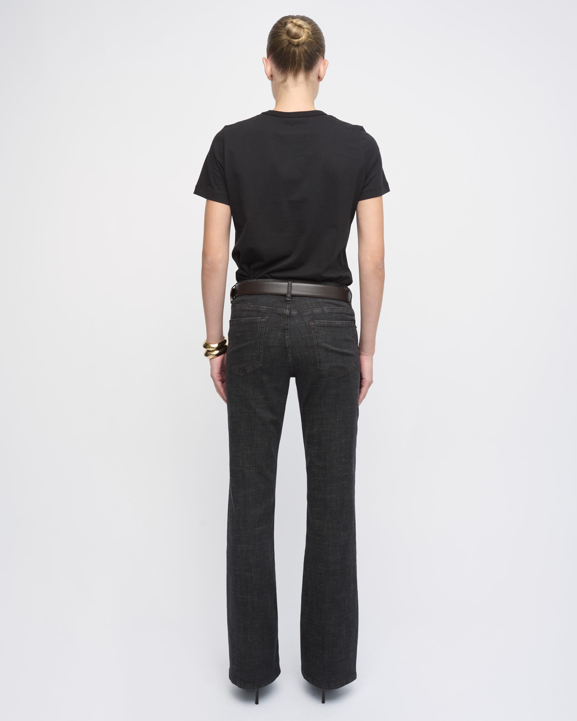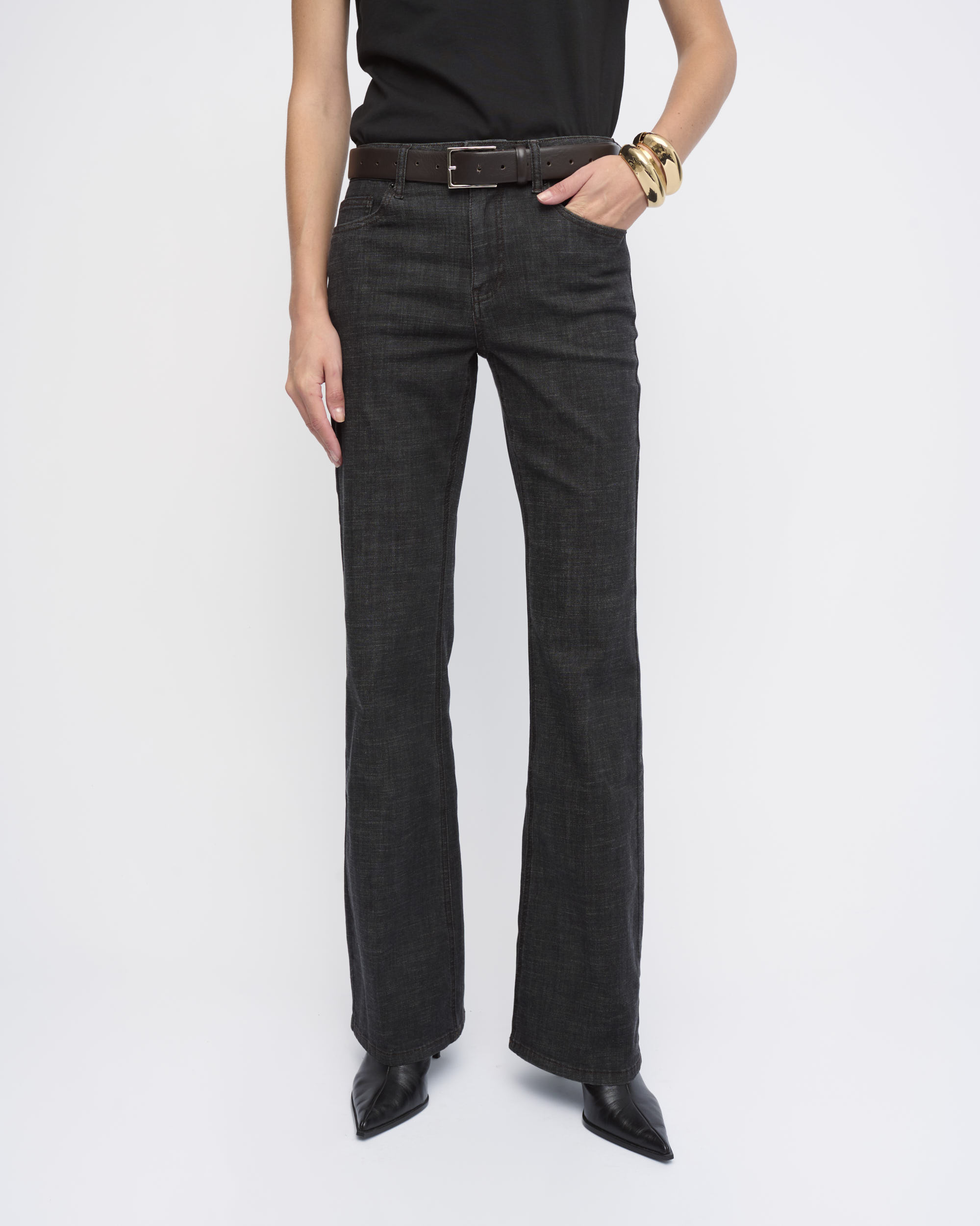 SKINNY FLARE HIGH WAIST ג’ינס בצללית צמודה, עיצוב חמישה כיסים, גוון כחול כהה.