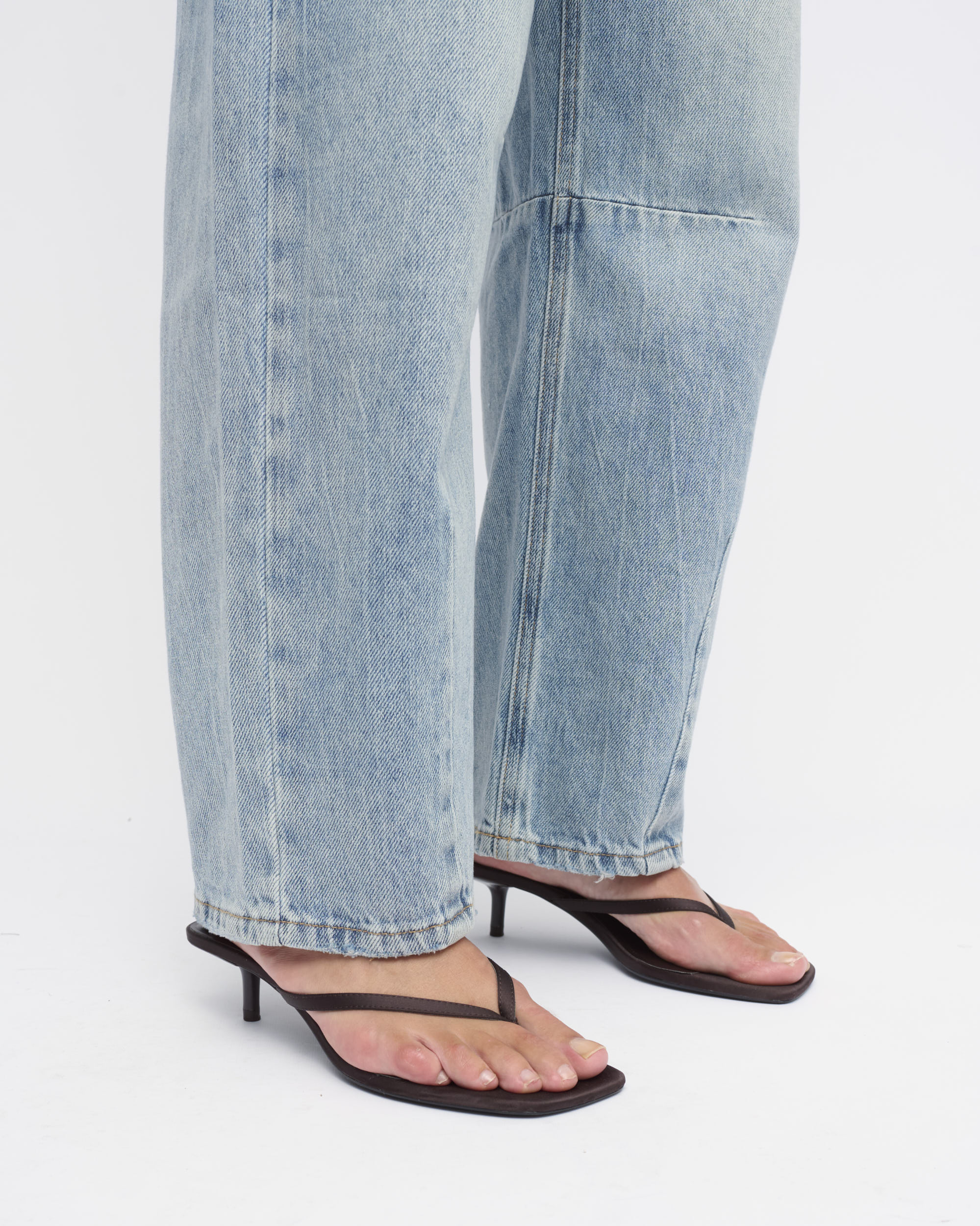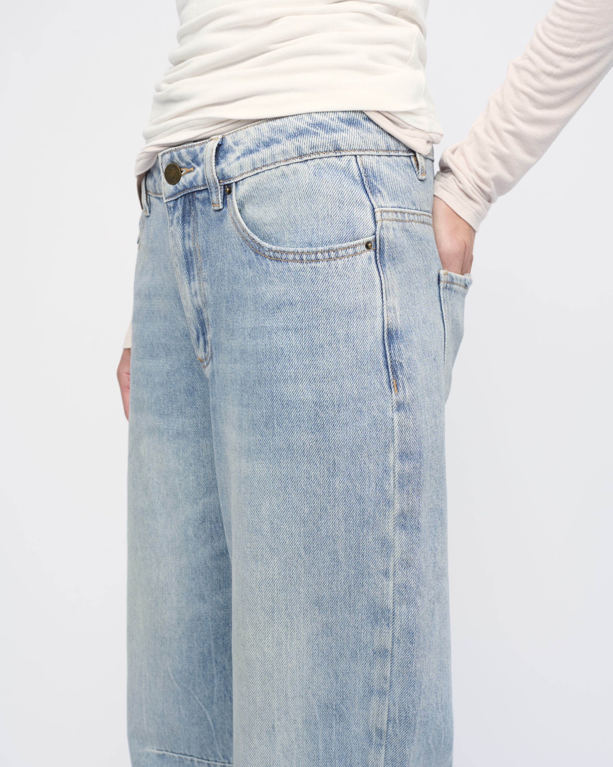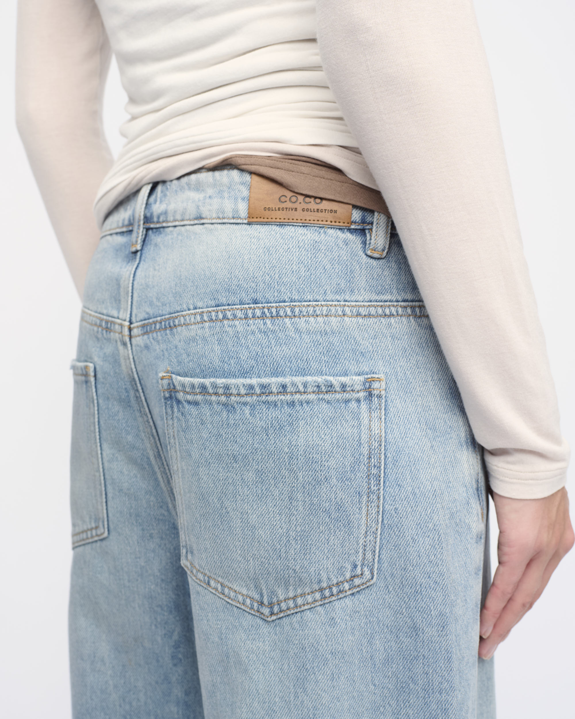 ג’ינס BARREL LEG HIGH WAIST, עיצוב 5 כיסים, גוון כחול שטוף.