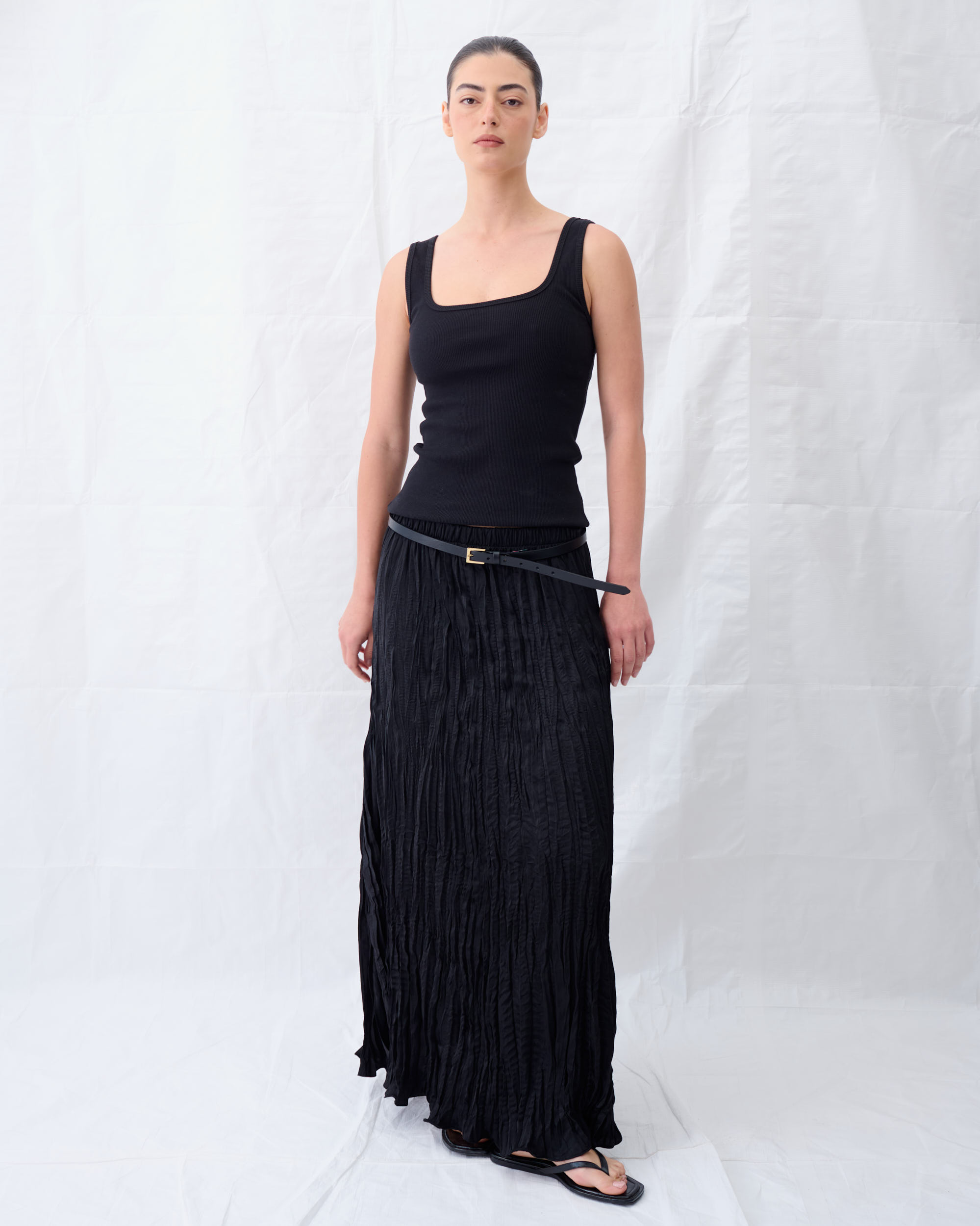 גופיה מסריג כותנה ליקרה בסריגת ריב. צללית צמודה, מחשוף מרובע.