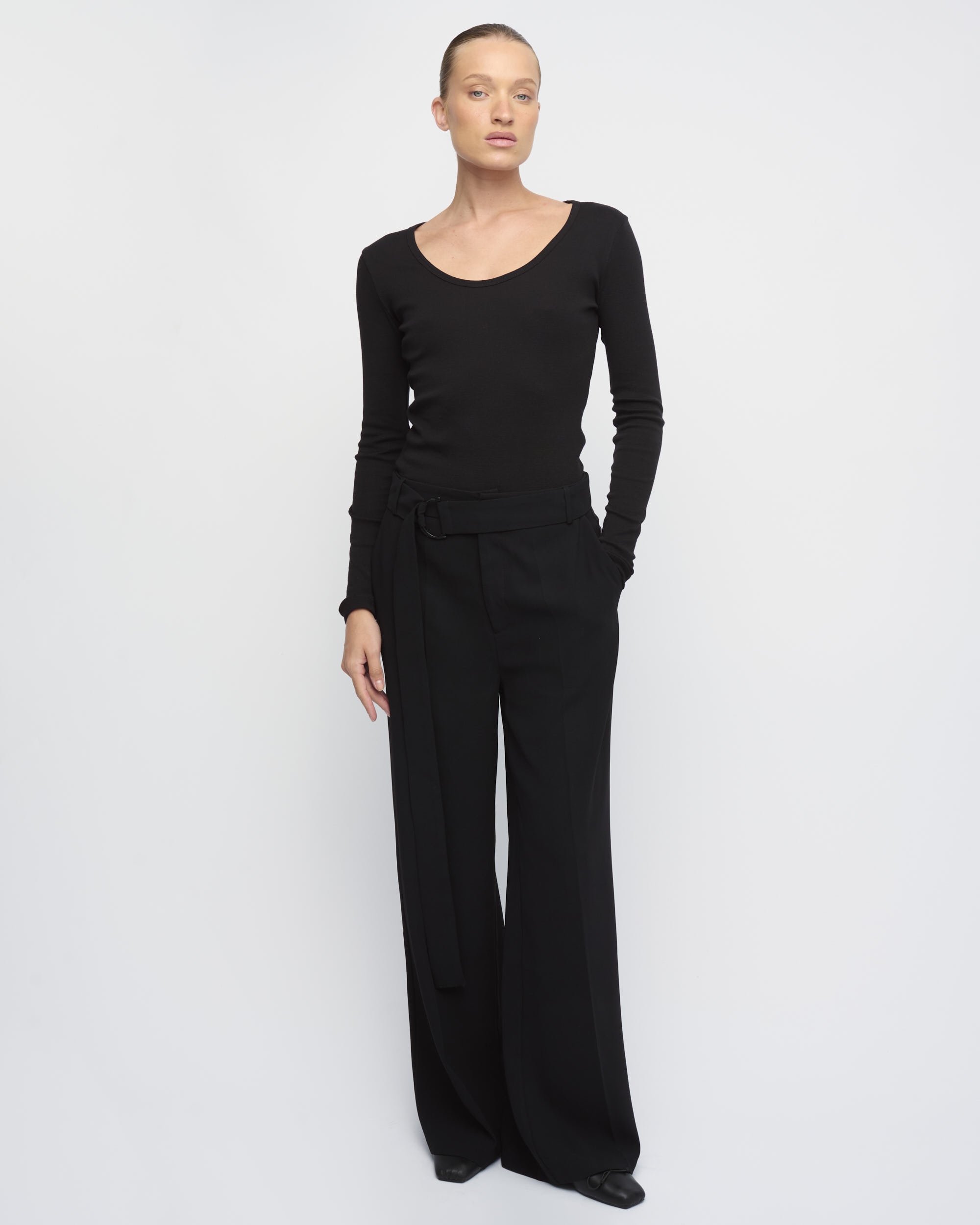 טופ סריג כותנה, צללית צמודה, מחשוף עגול עמוק.