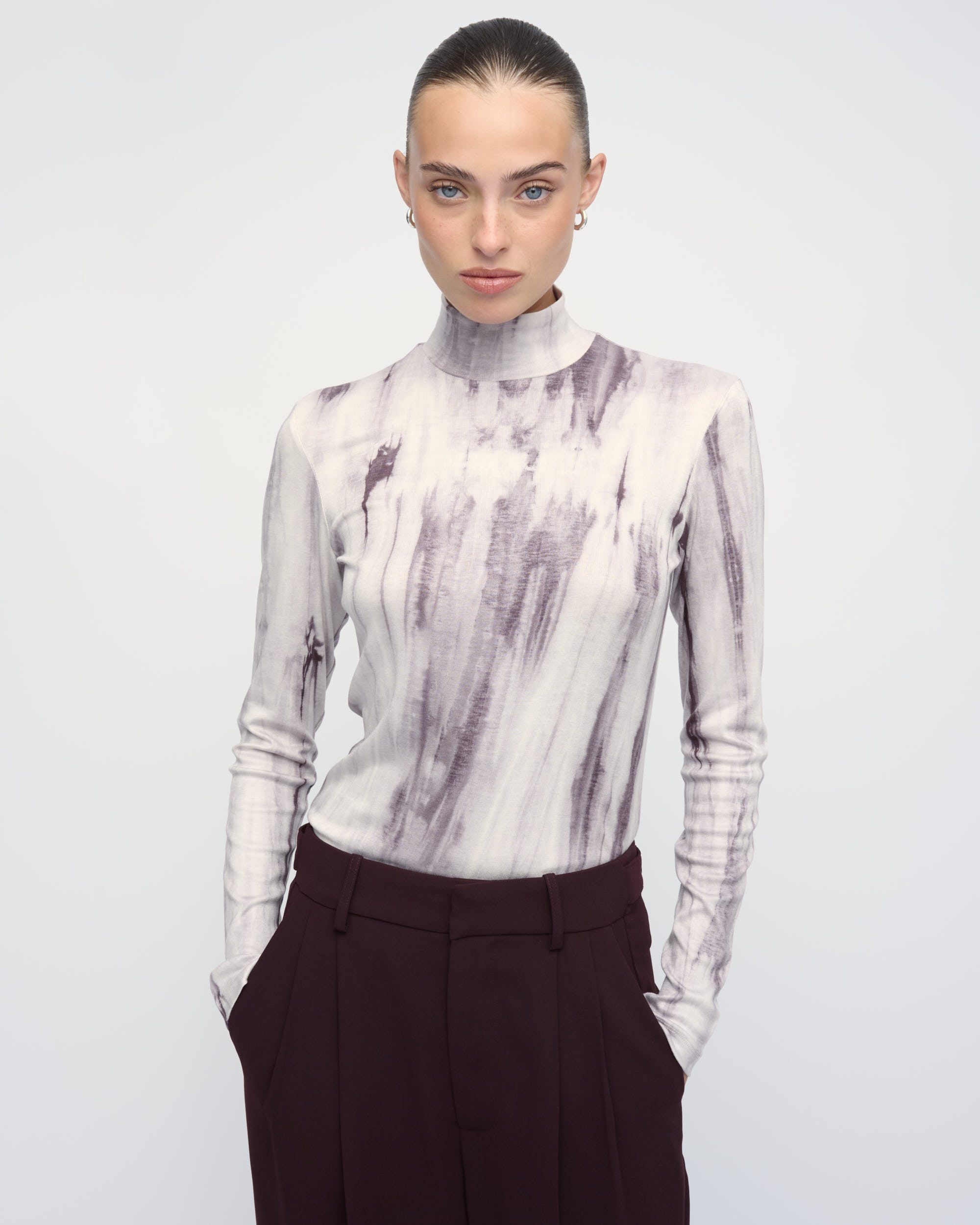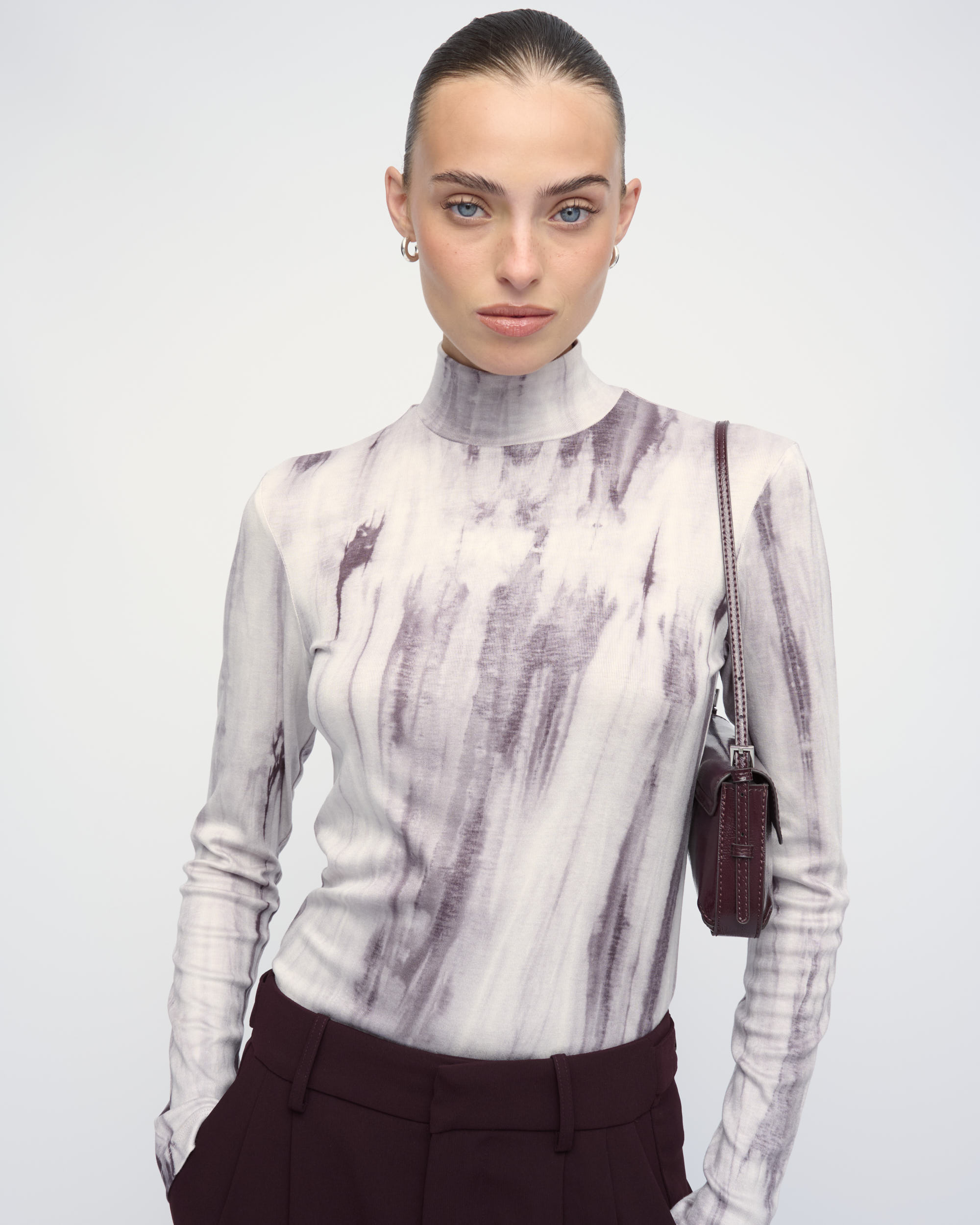 חולצת טי מויסקוזה ליקרה בהדפס בטיק. צללית צמודה. צוארון גולף.