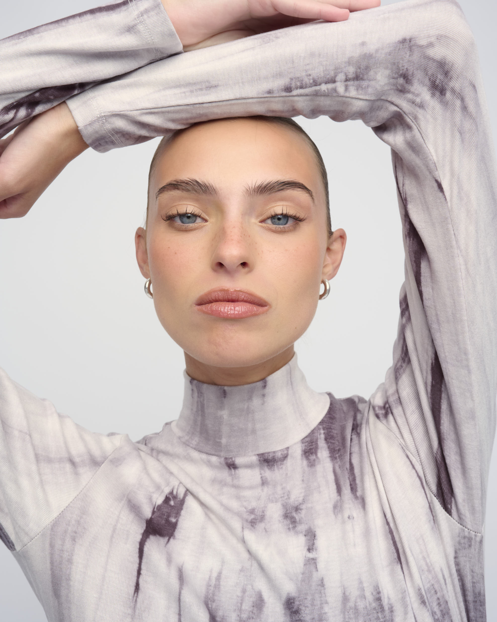 דוגמנית 176 ס”מ, לובשת מידה S • הרכב בד 95% ויסקוזה 5% ליקרה