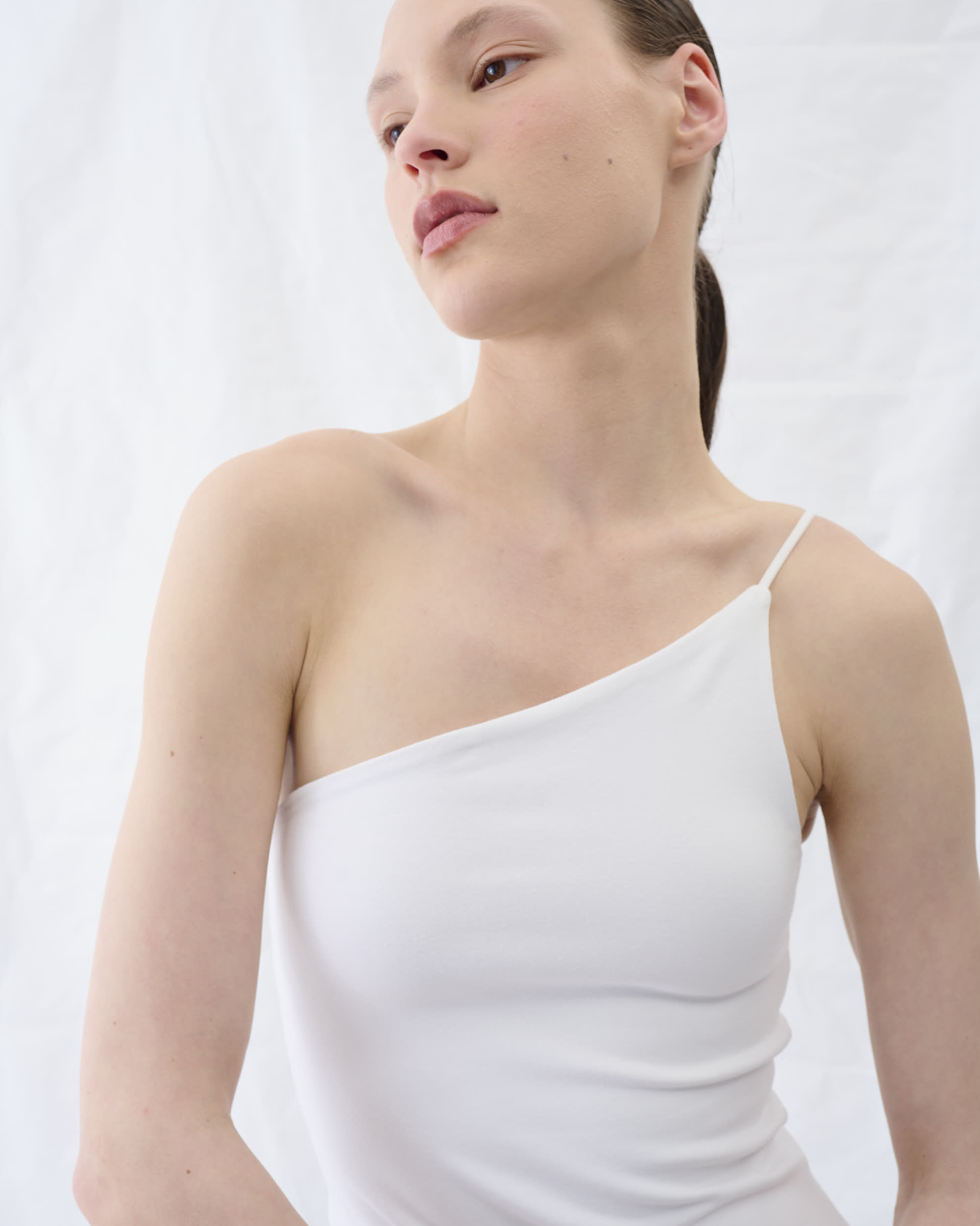 חולצה מסריג כותנה ליקרה, מחשוף אסימטרי, כתפיה אחת.