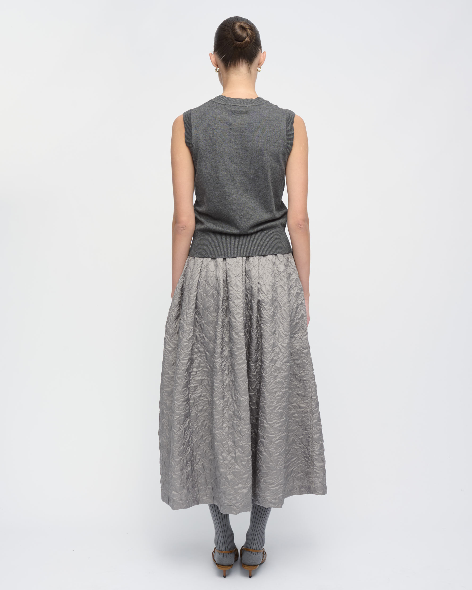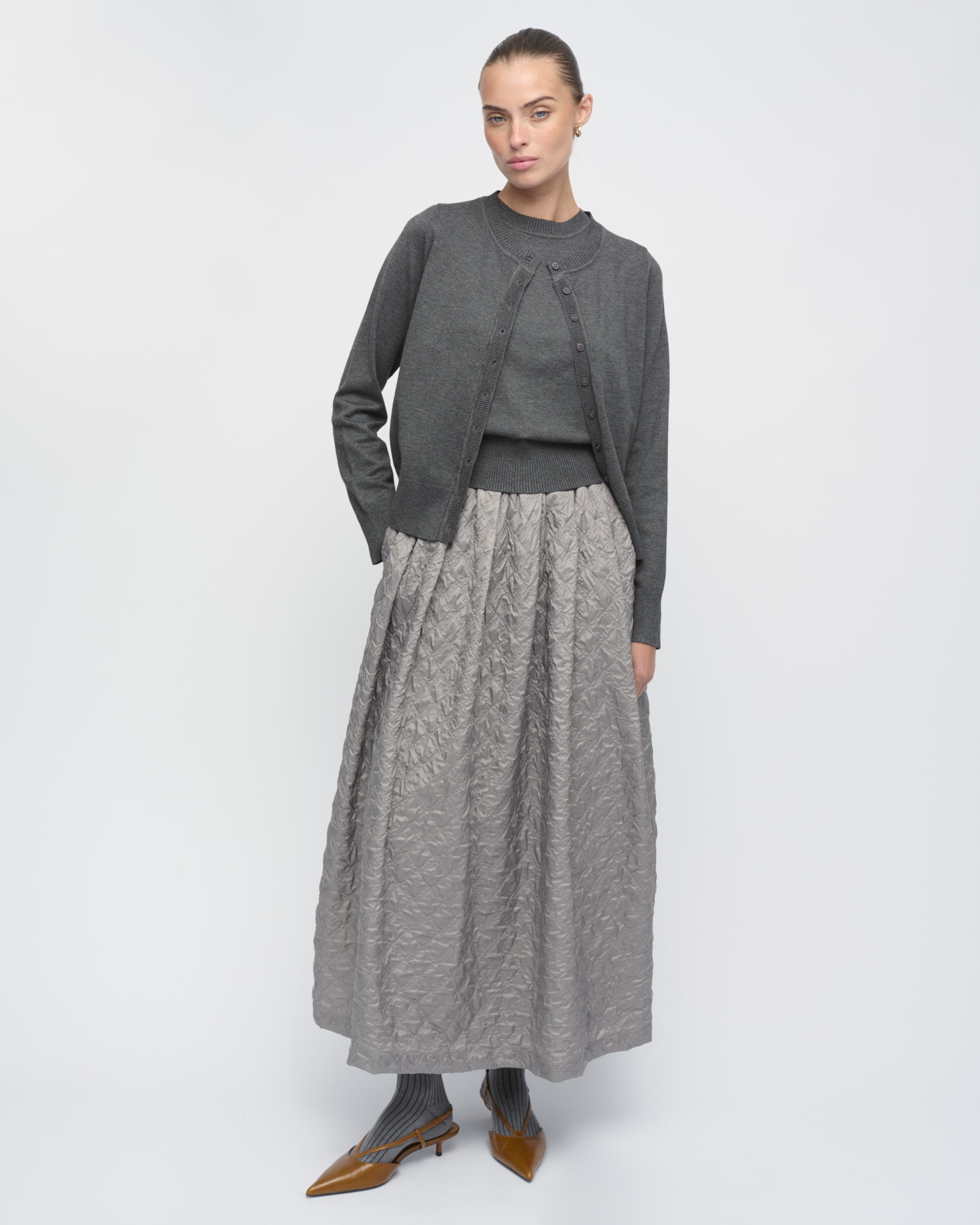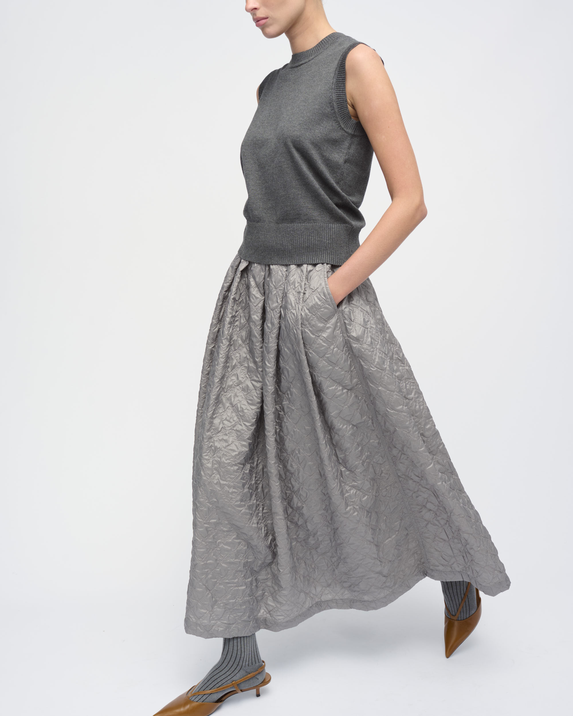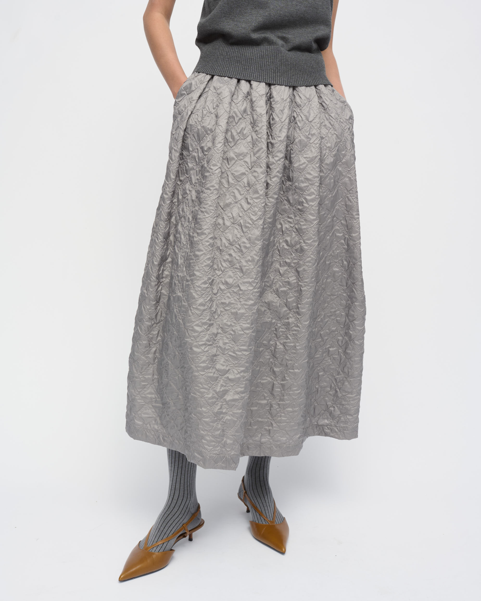 חצאית רחבה, מבד קווילט בדוגמת מעויינים, עם חגורת מותן אלסטית.