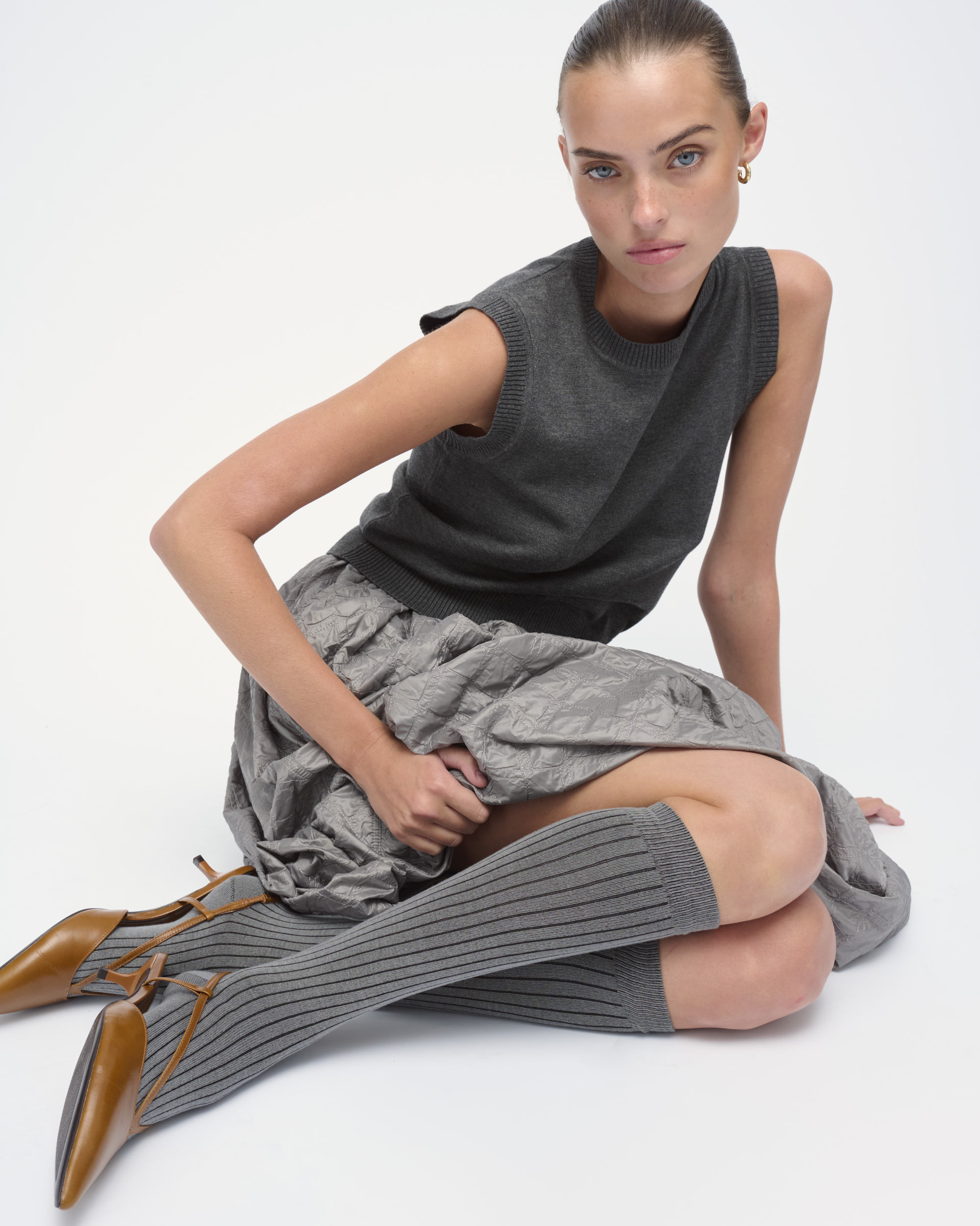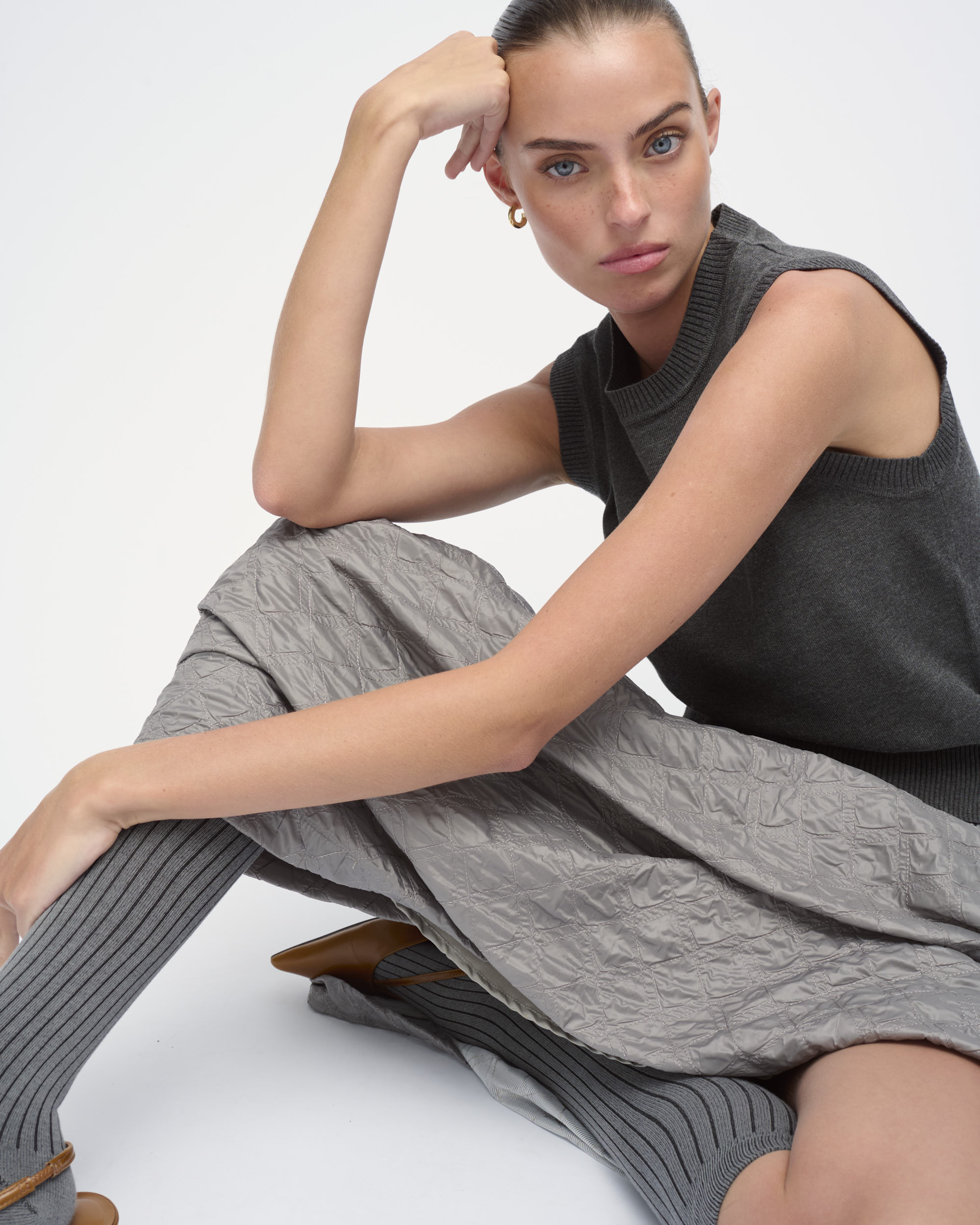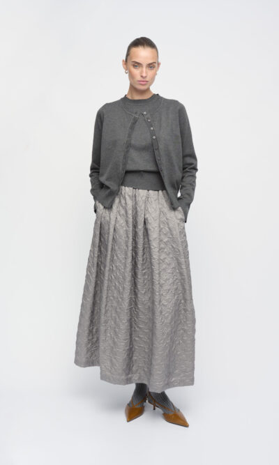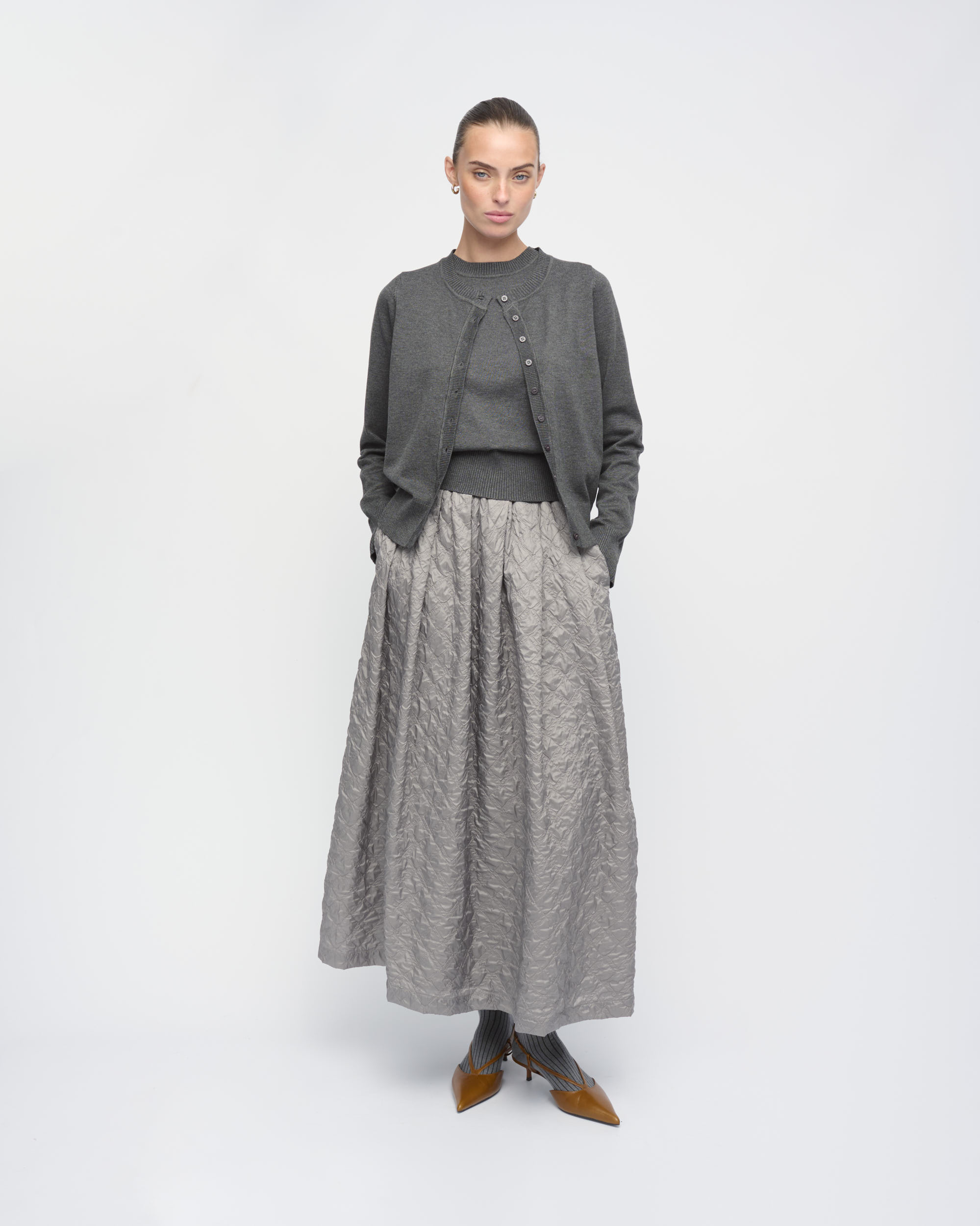 חצאית רחבה, מבד קווילט בדוגמת מעויינים, עם חגורת מותן אלסטית.