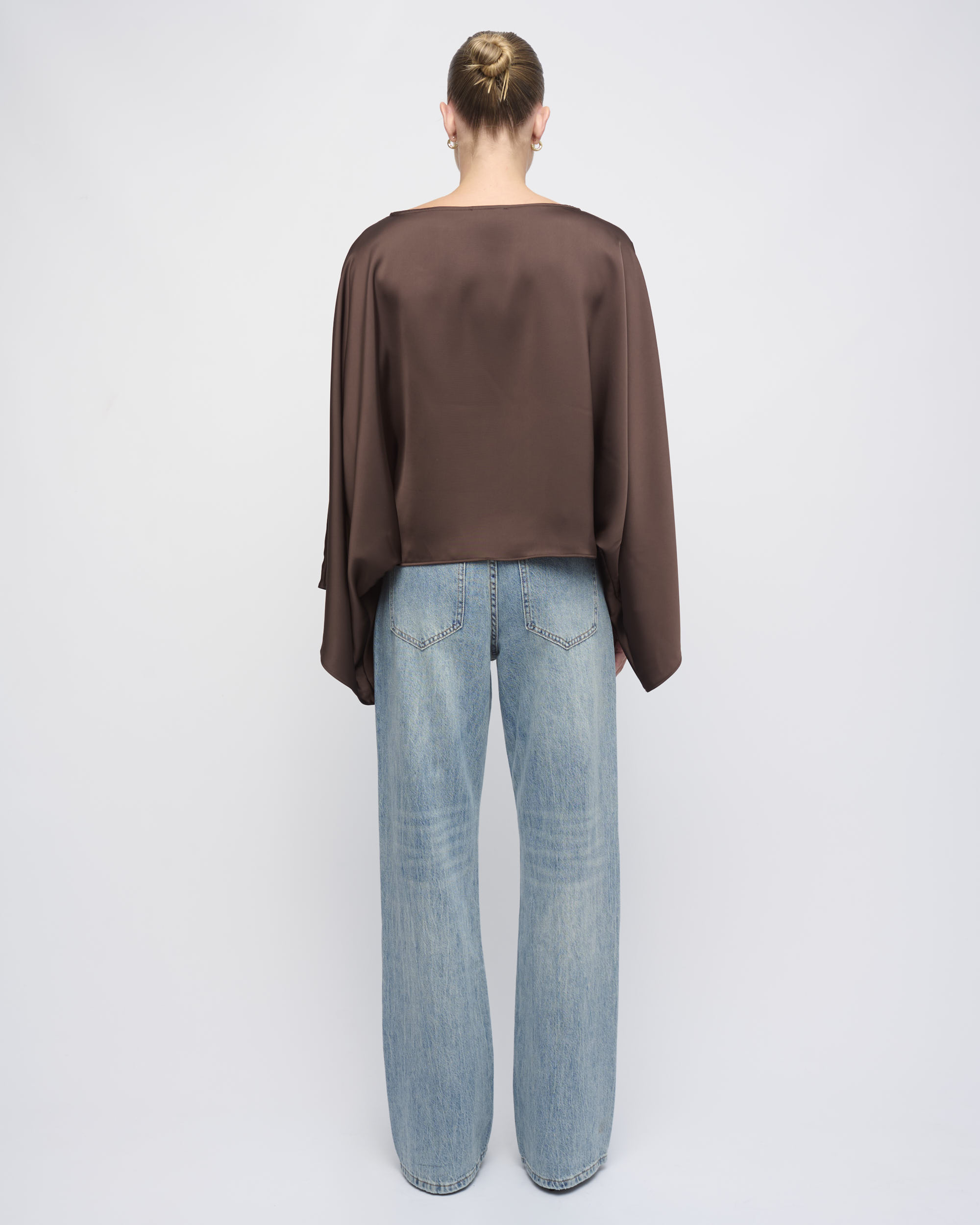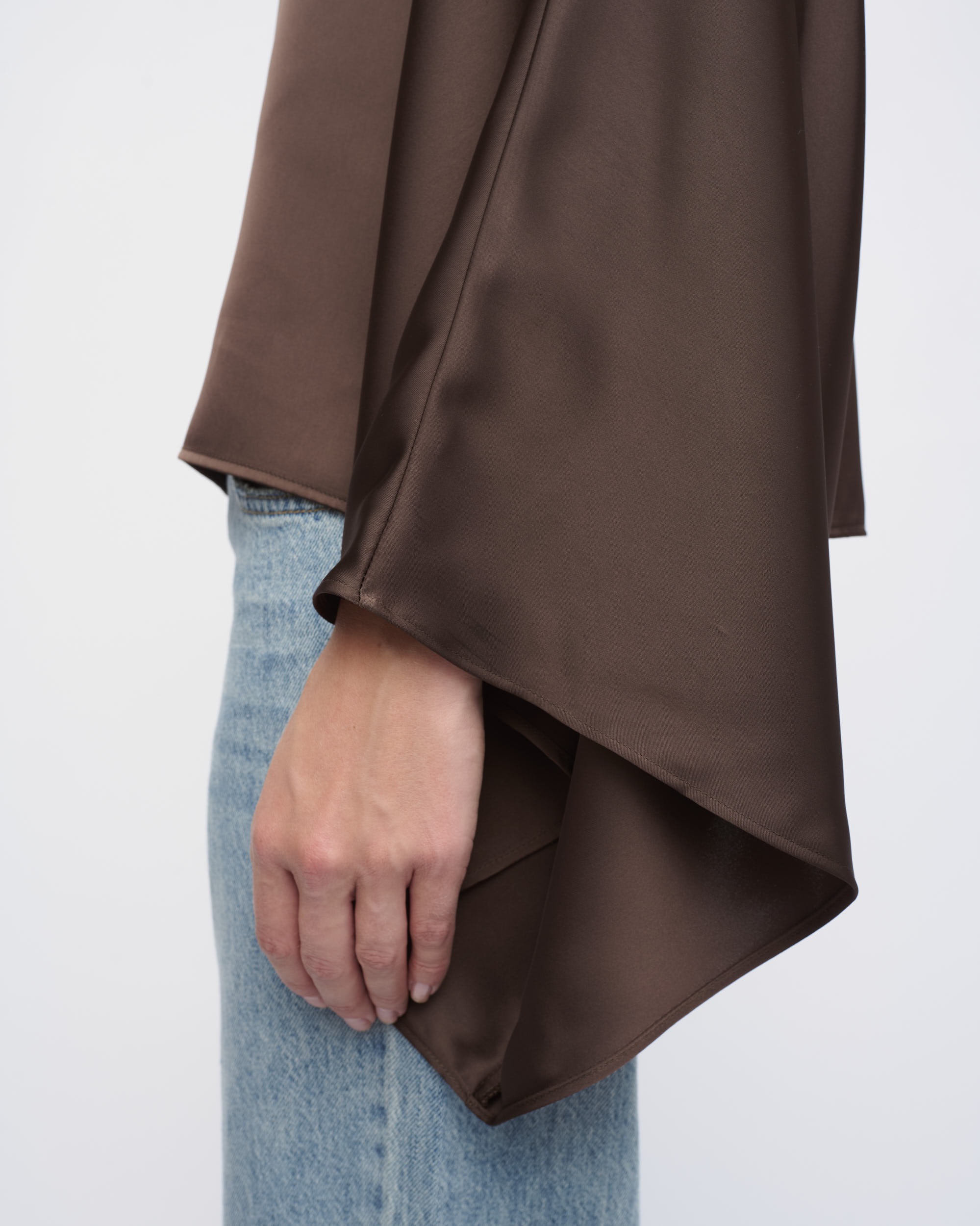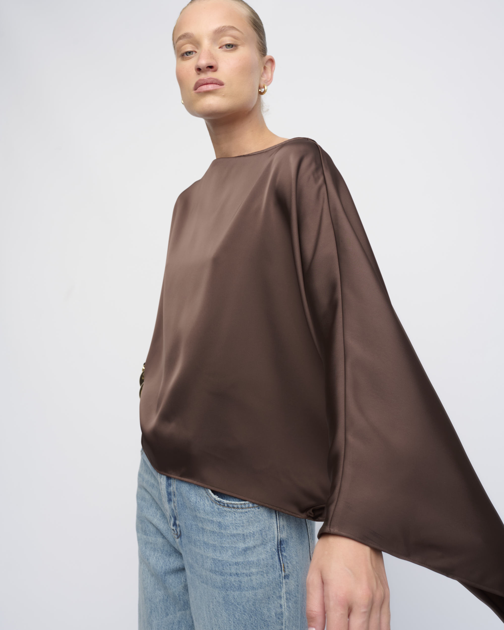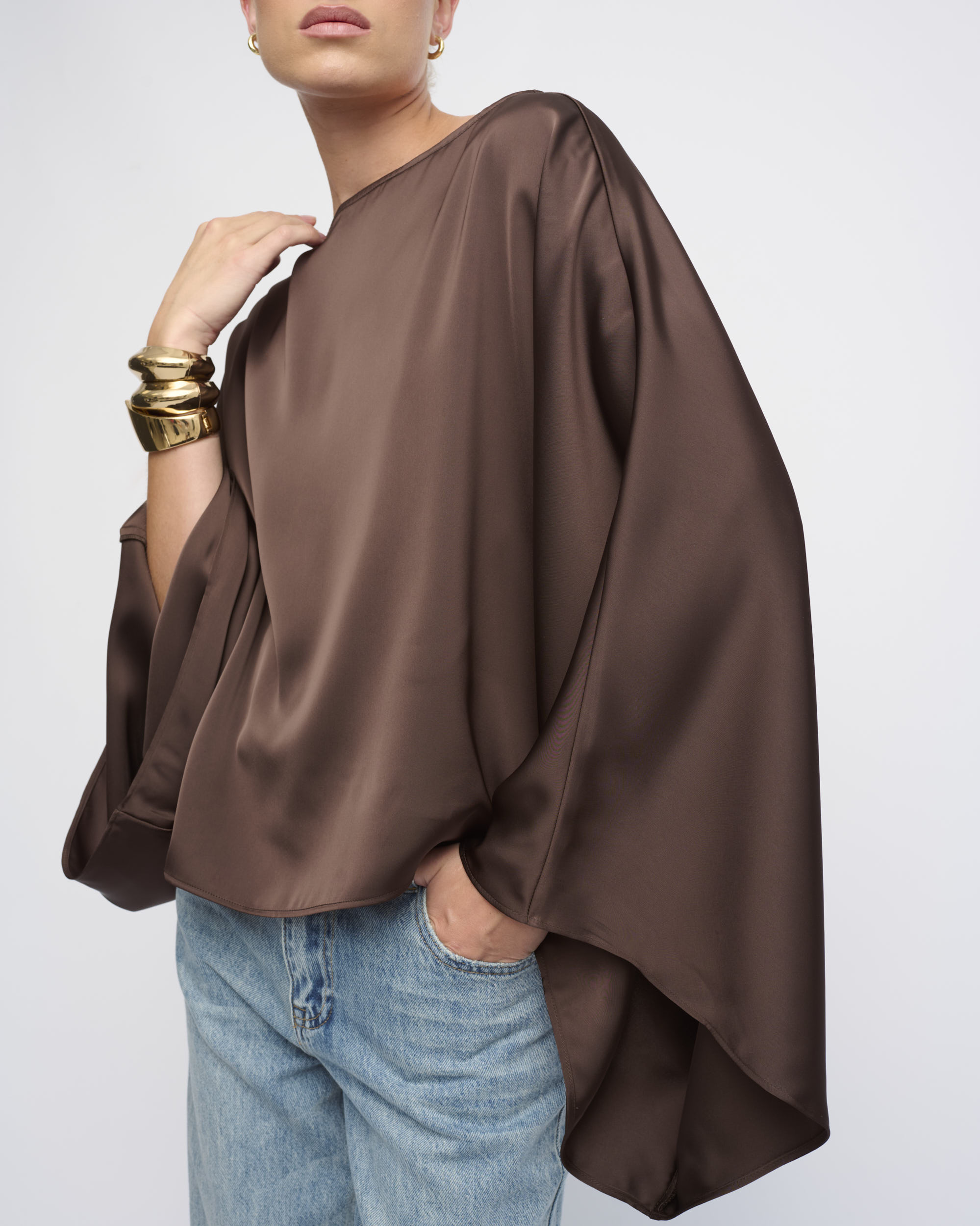 חולצת סאטן בסגנון גלימה. שרוולים רחבים, מחשוף סירה.