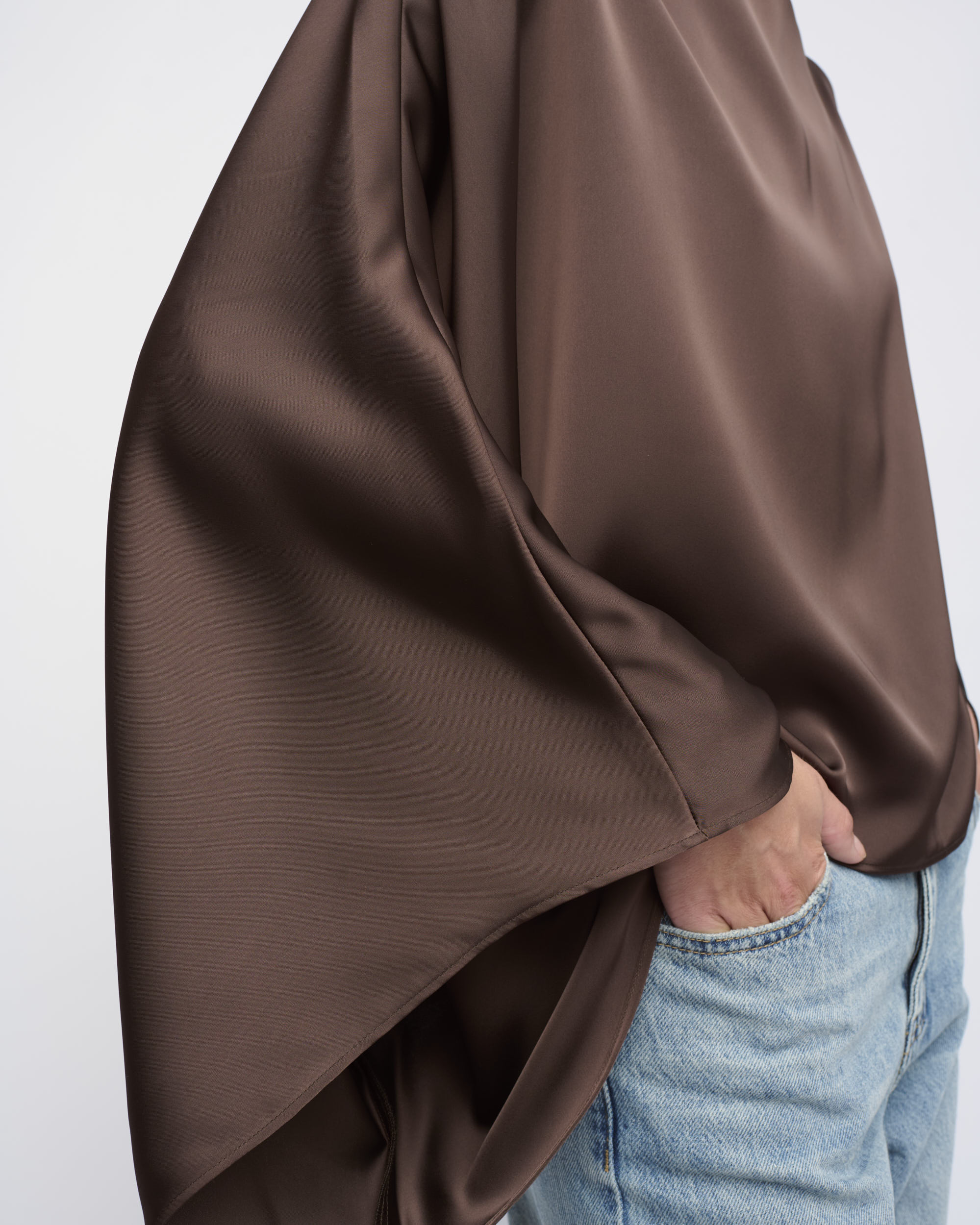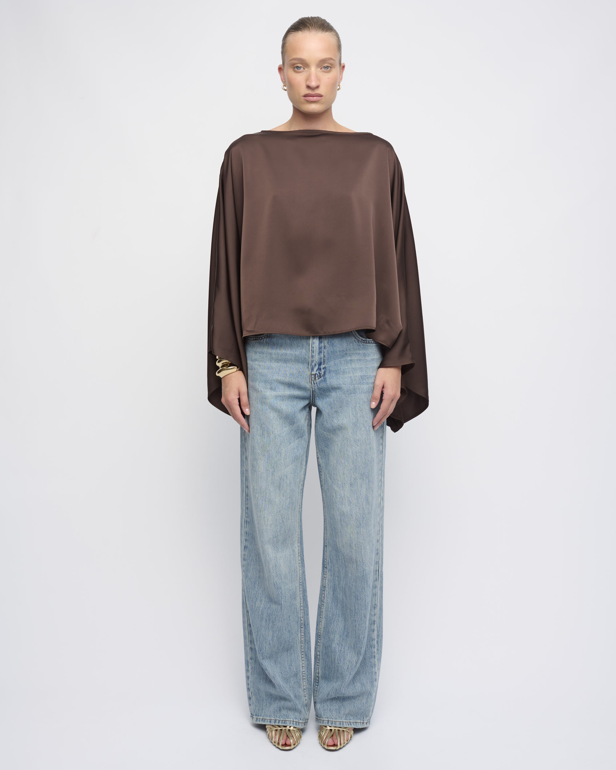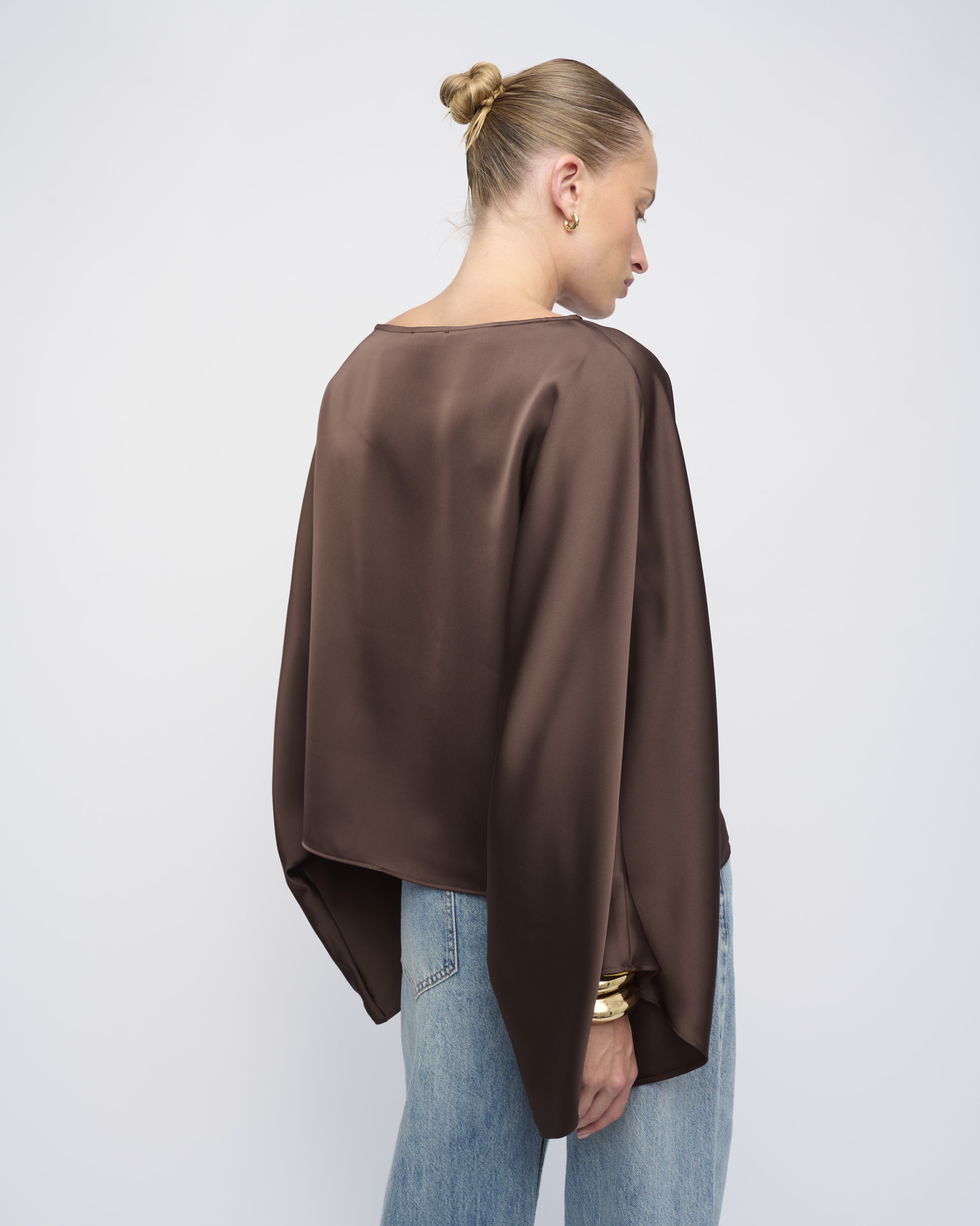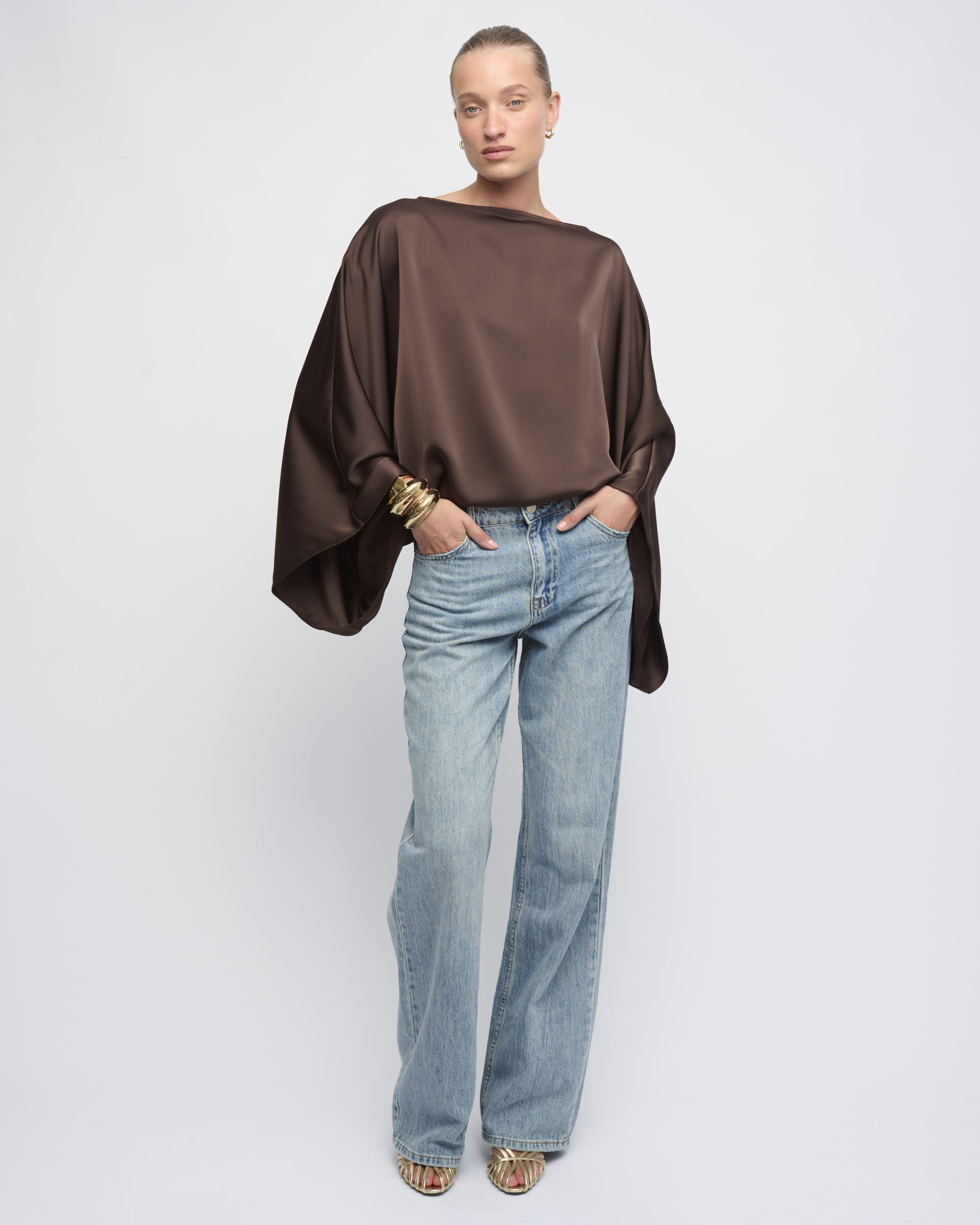 חולצת סאטן בסגנון גלימה. שרוולים רחבים, מחשוף סירה.