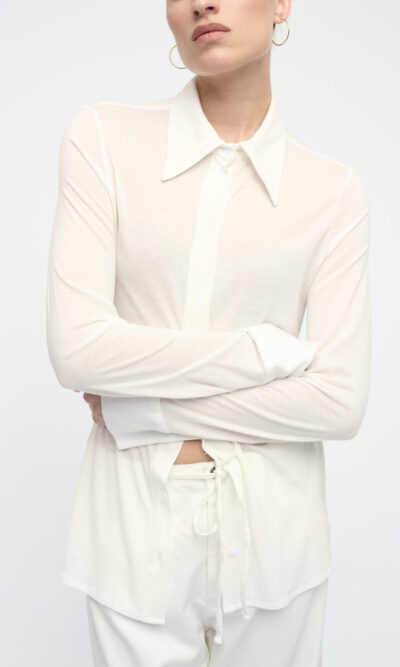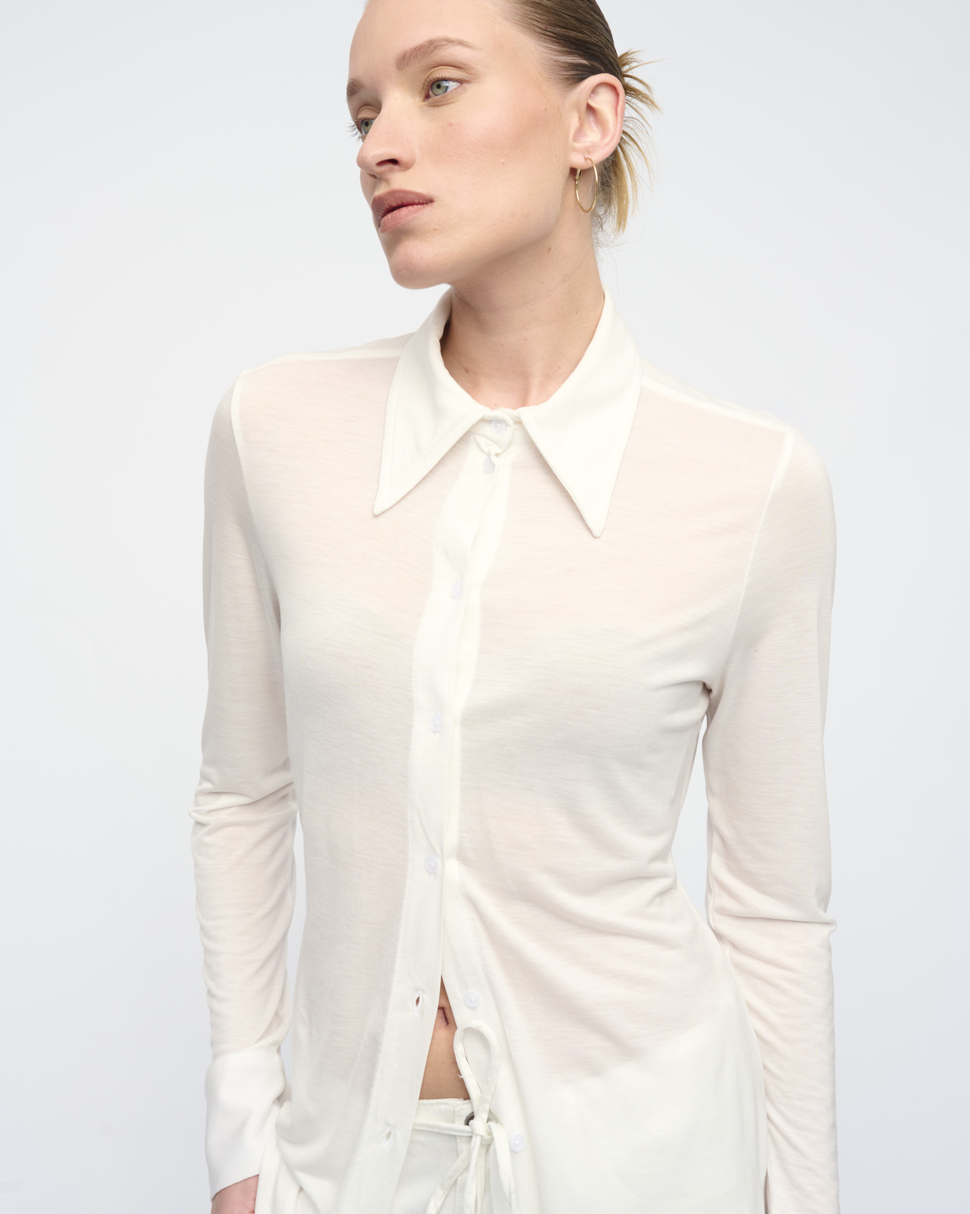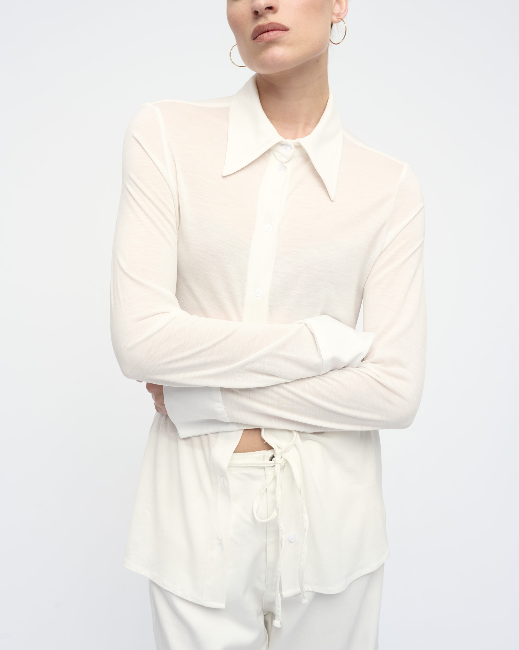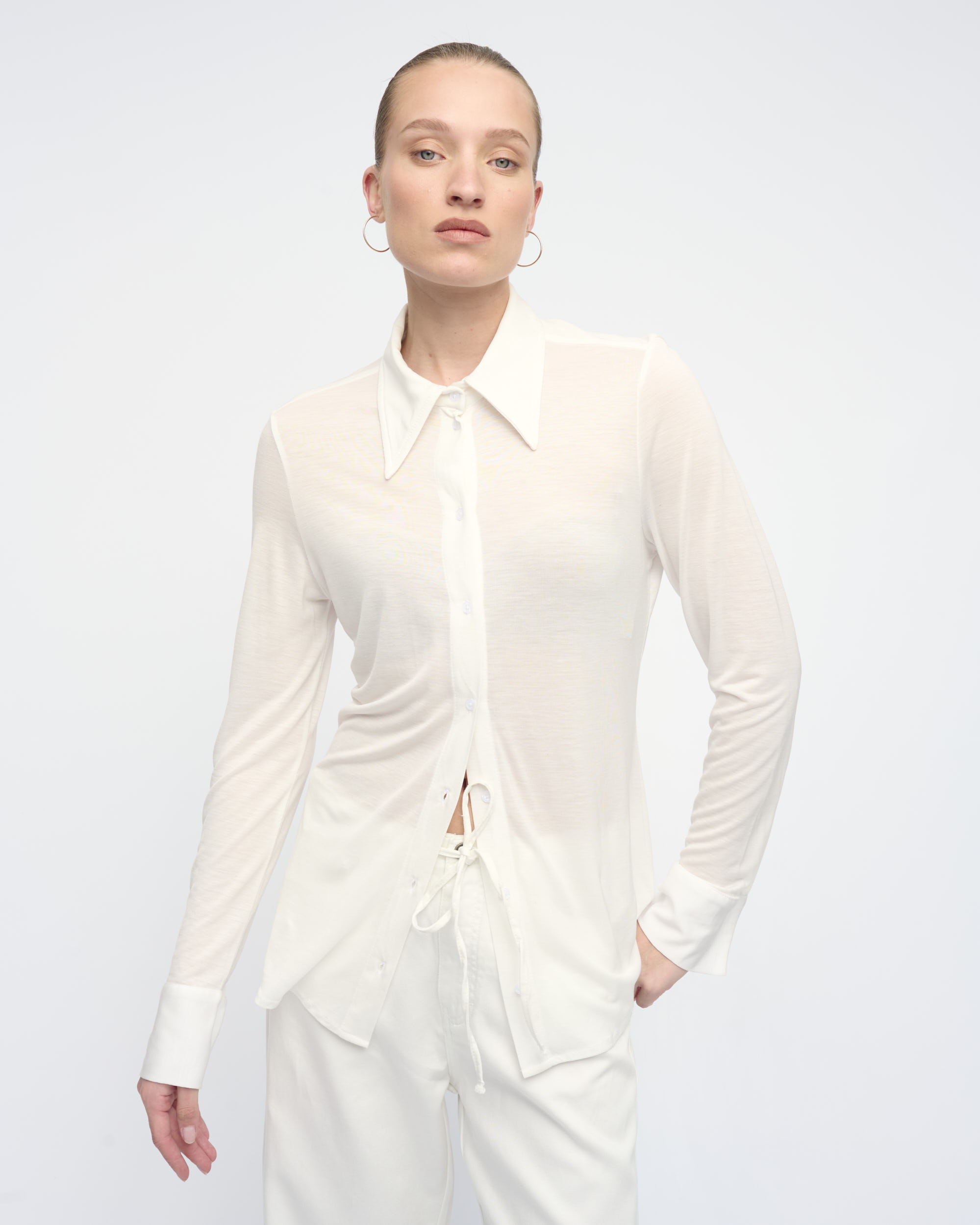 חולצת כפתורים מסריג טנסל. צללית קרובה לגוף.