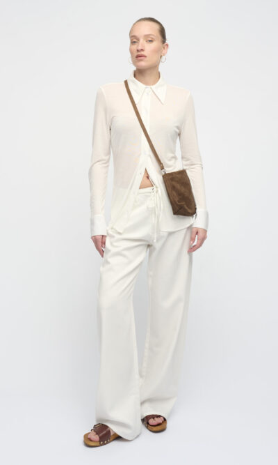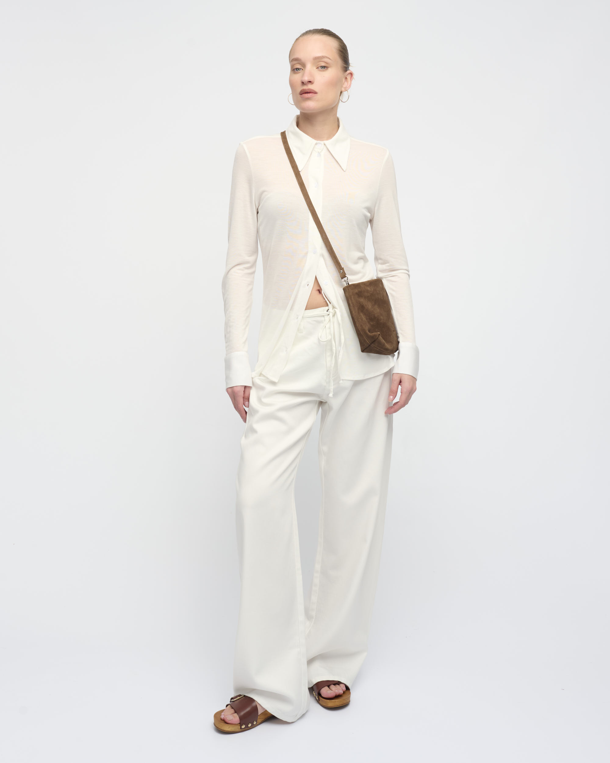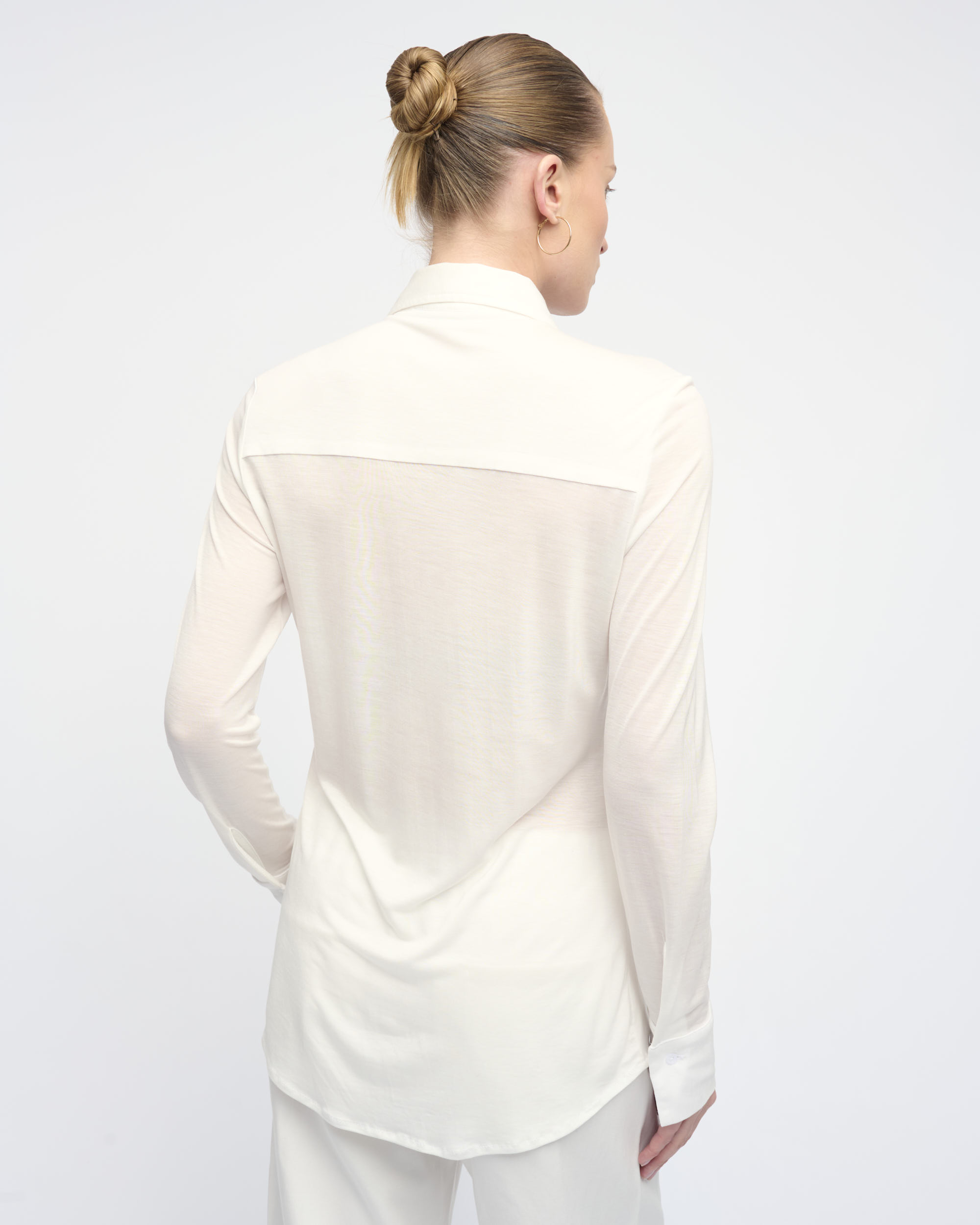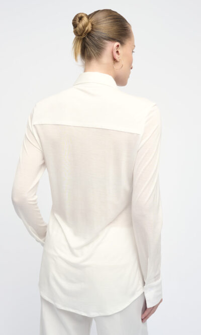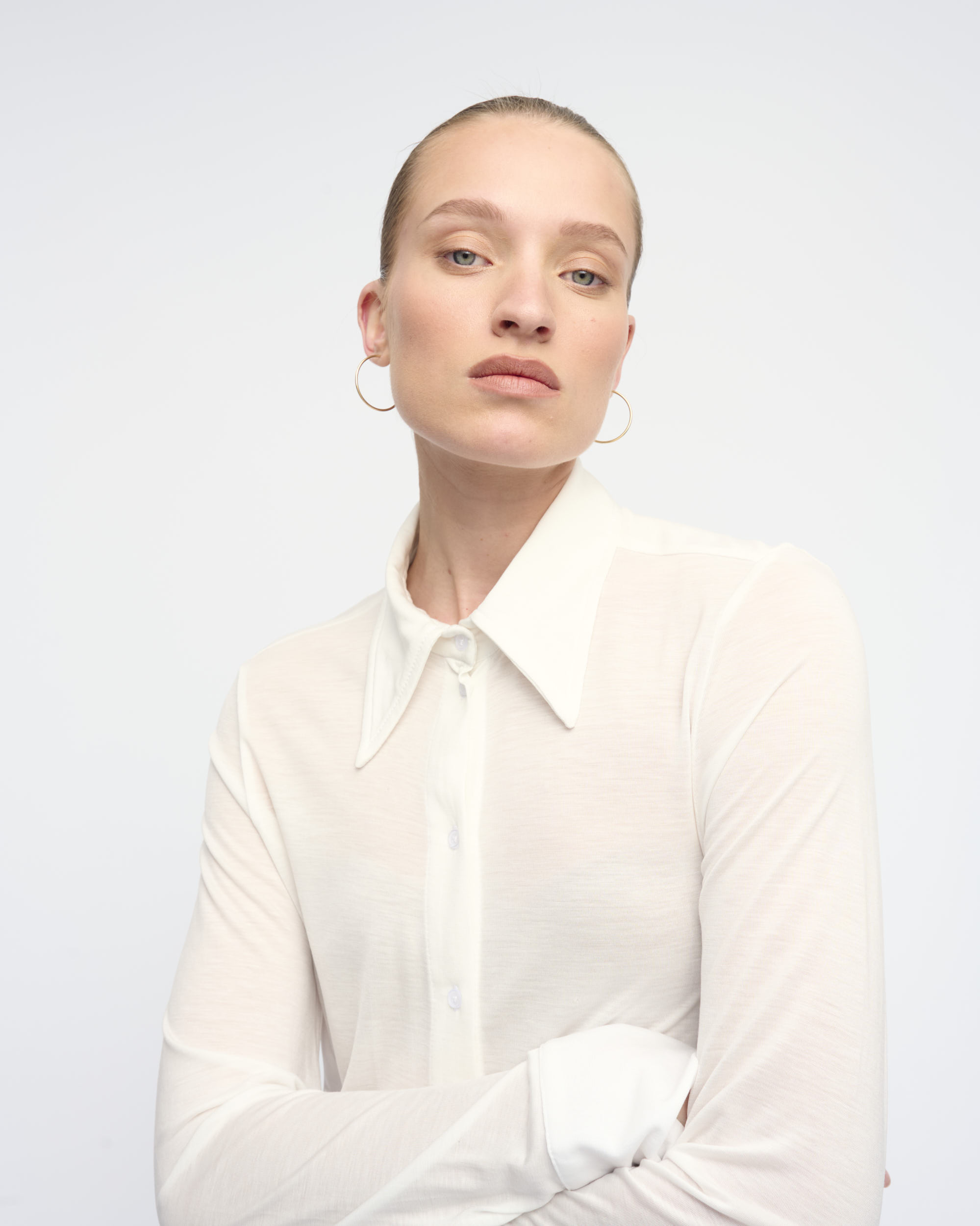 חולצת כפתורים מסריג טנסל. צללית קרובה לגוף.