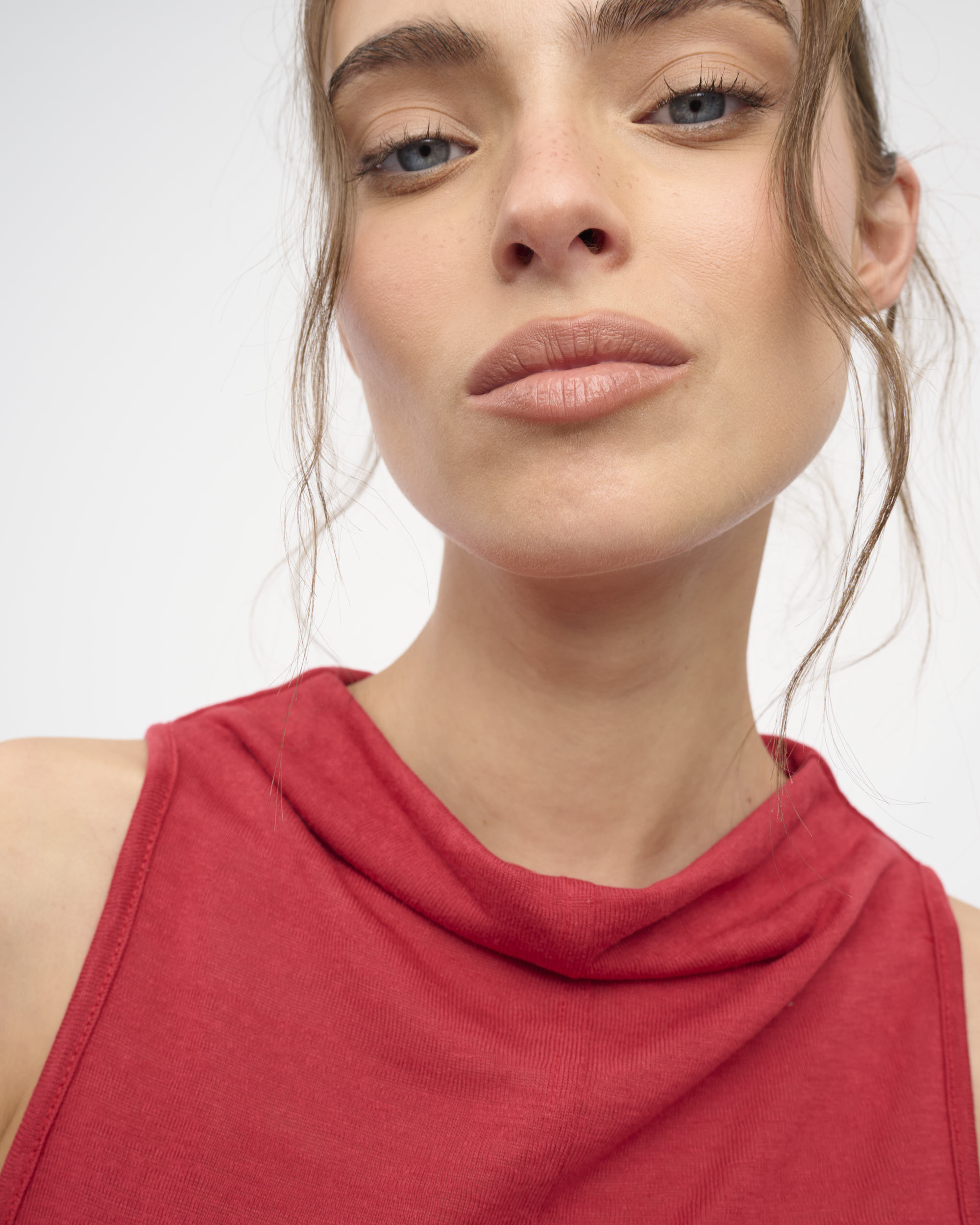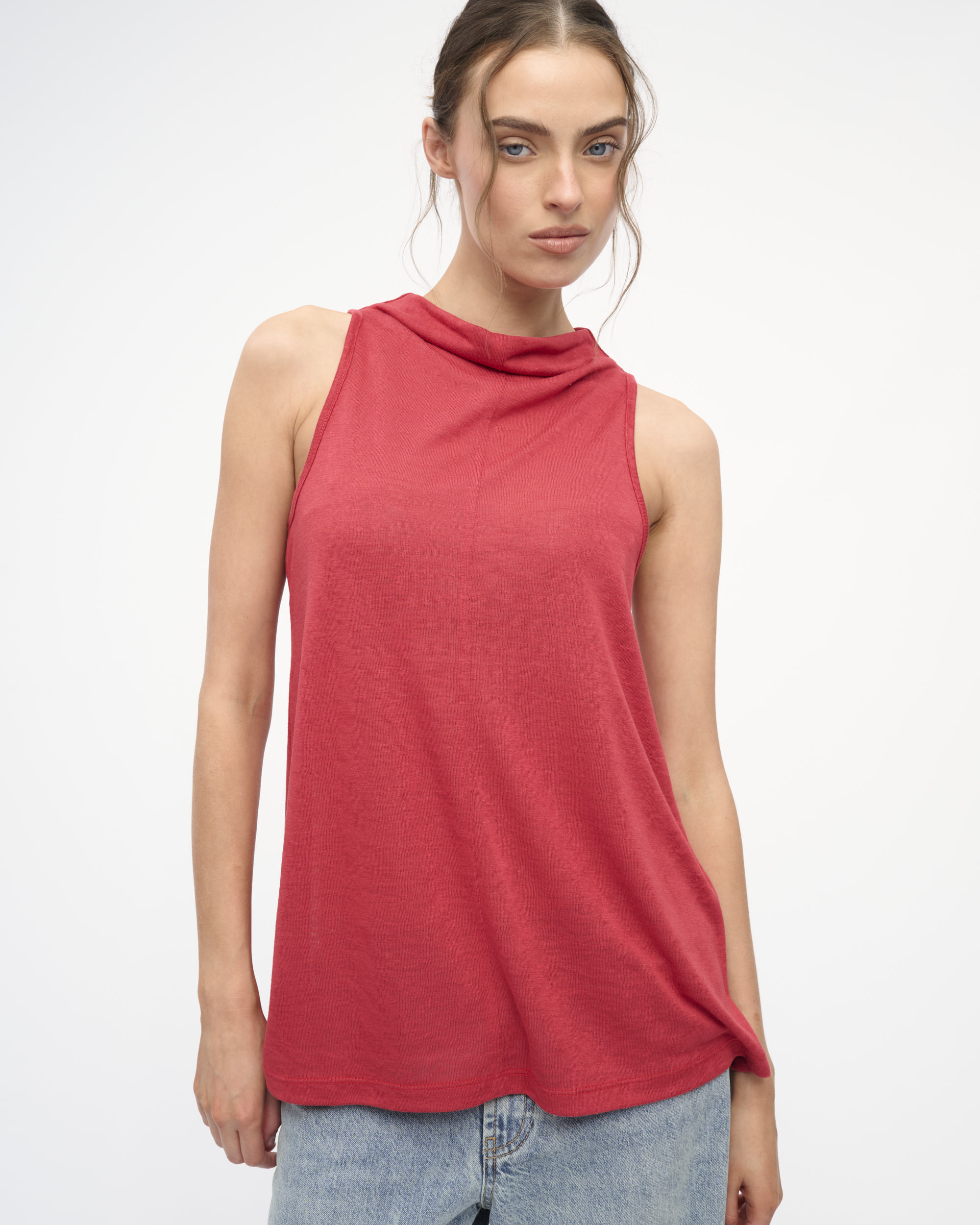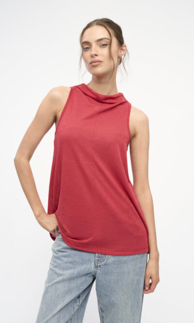 טופ מסריג ויסקוזה, צללית נינוחה, ללא שרוולים, צוארון גבוה.