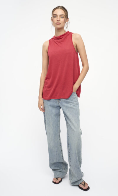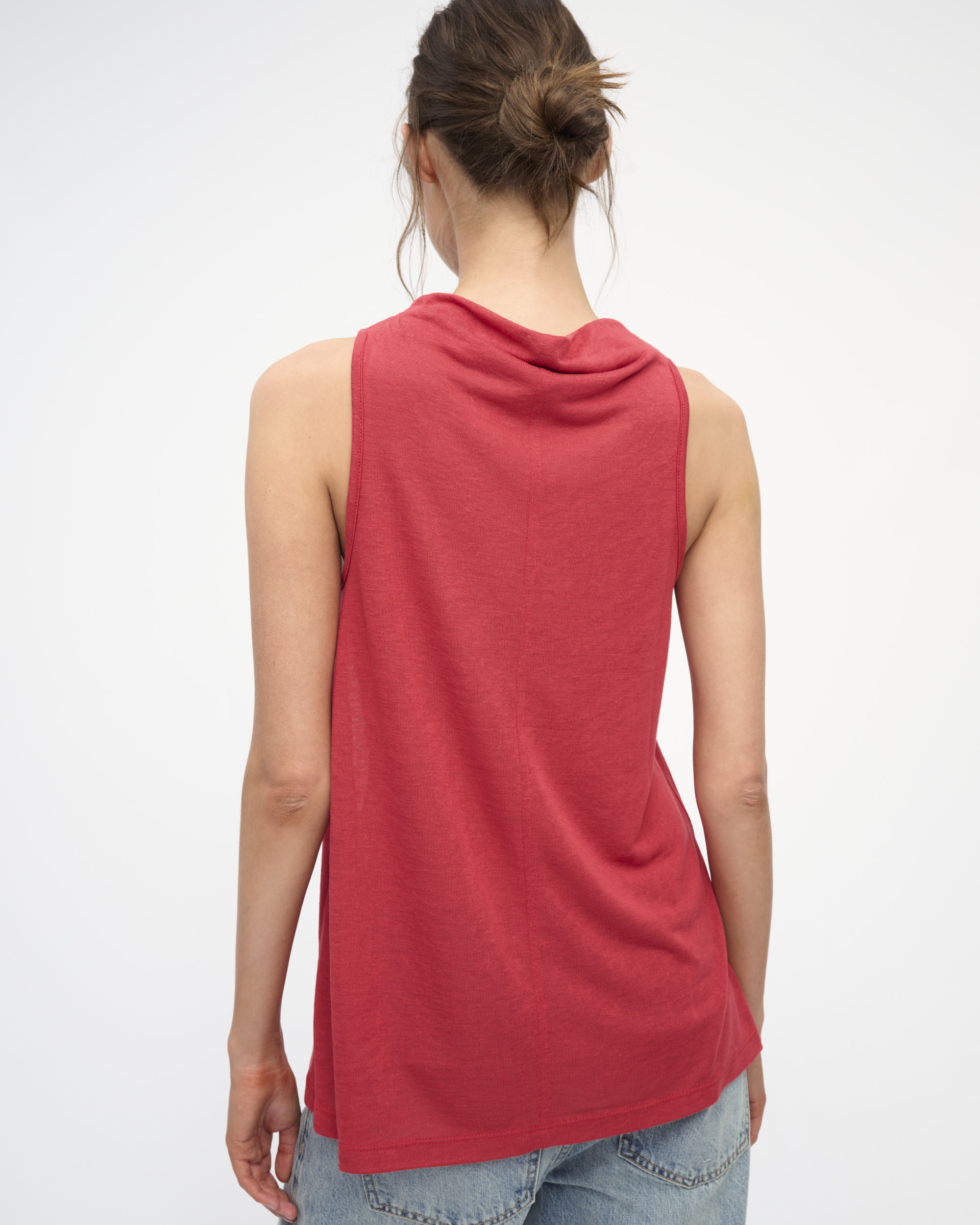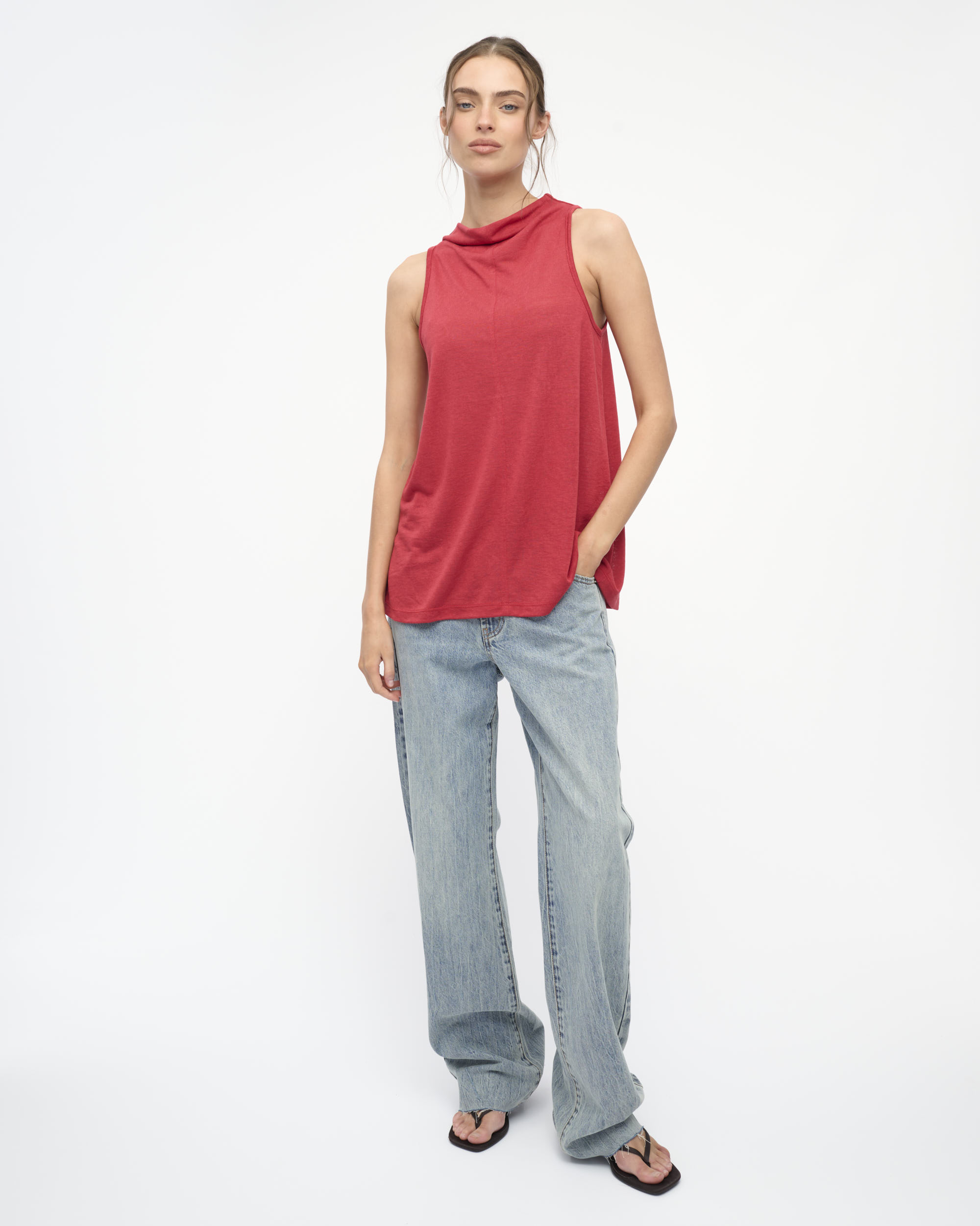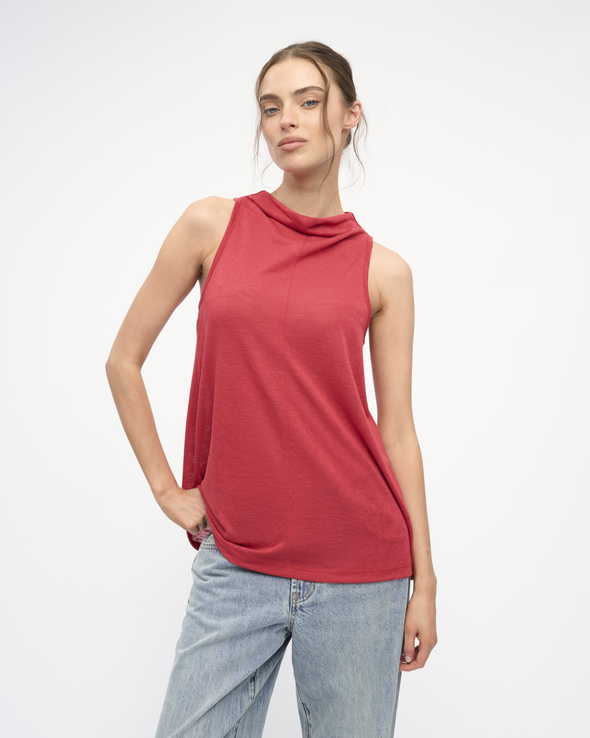 טופ מסריג ויסקוזה, צללית נינוחה, ללא שרוולים, צוארון גבוה.
