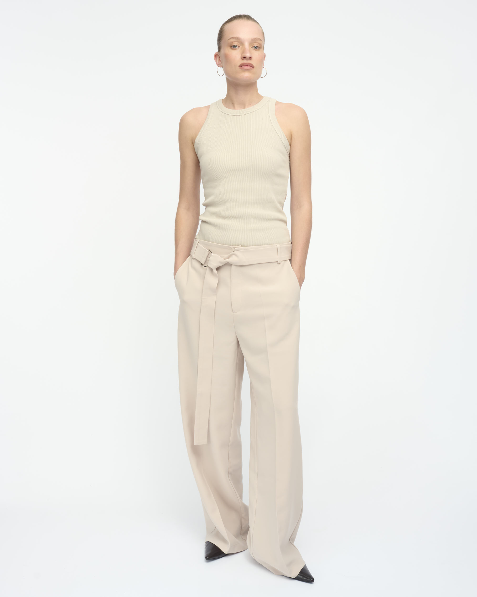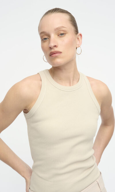 גופיה מסריג ריב. צללית צמודה, מחשוף עגול.