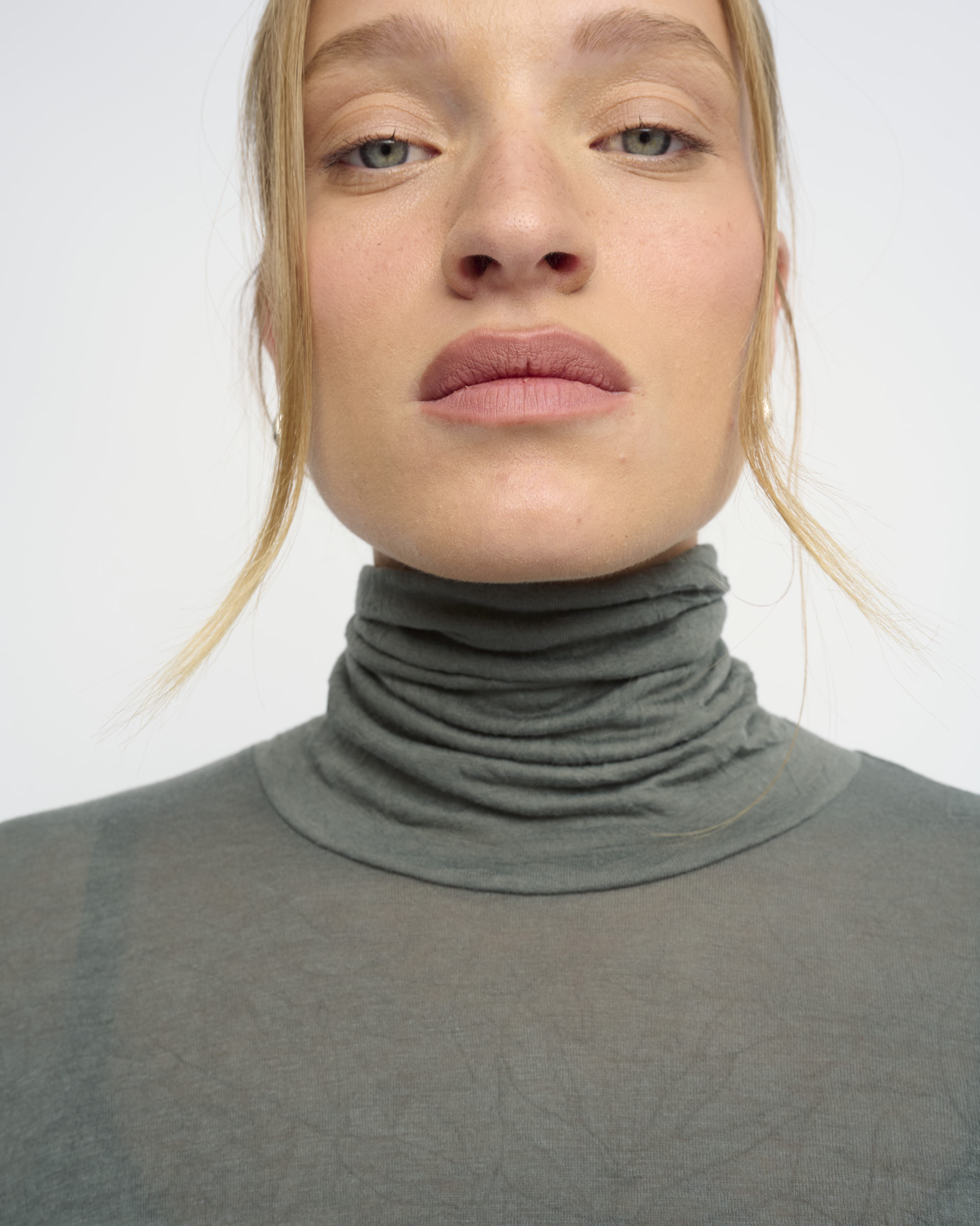 חולצת טי מסריג כותנה דק עם אפקט קימוט עדין. צללית צמודה. צוארון גולף.