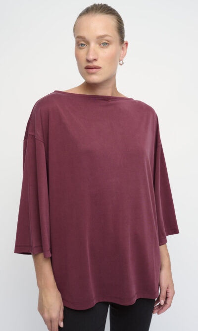 טוניקה מסריג מודל, צללית רחוקה מהגוף. שרוול באורך 3/4. מחשוף סירה.