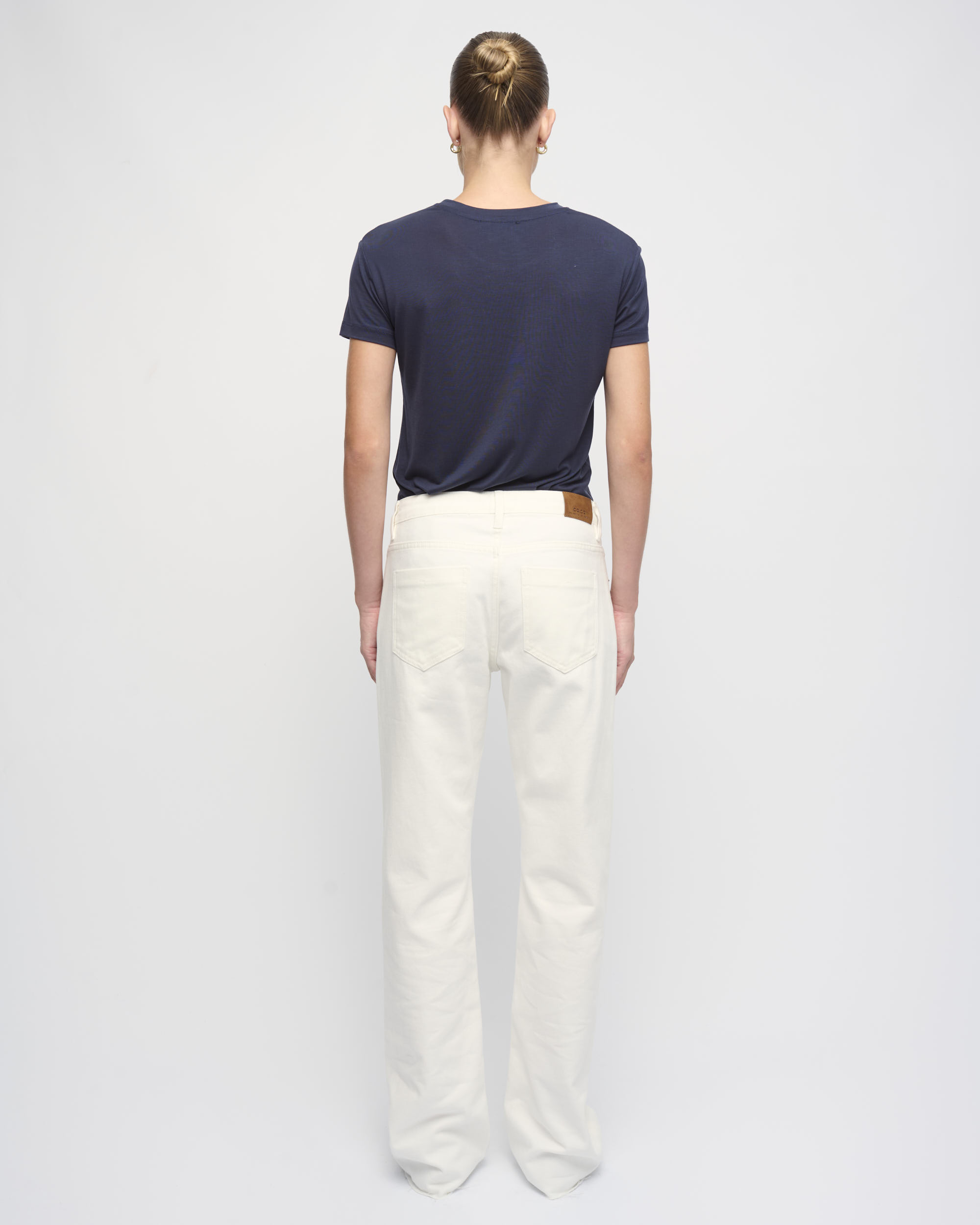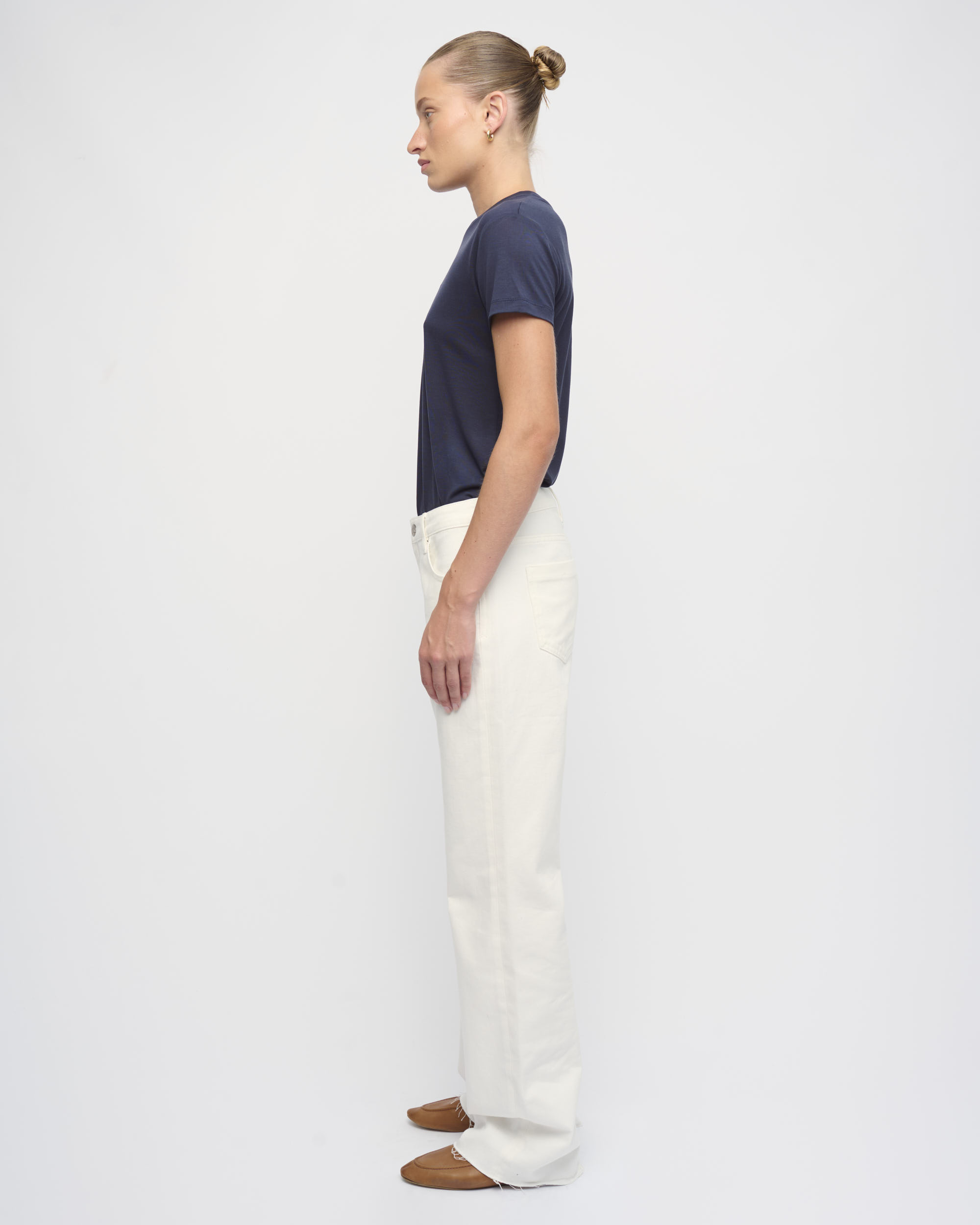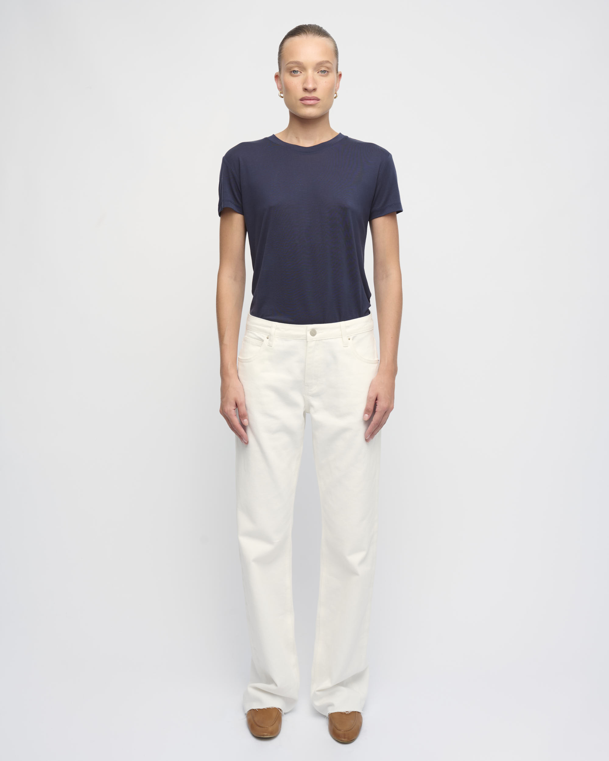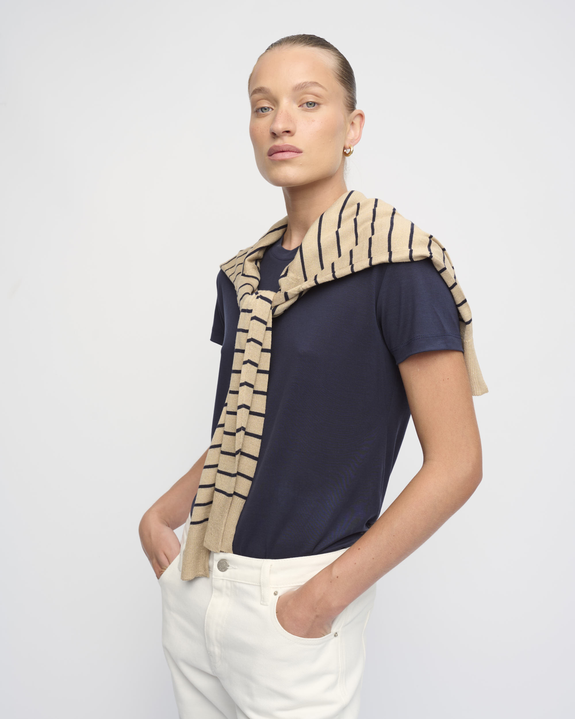 חולצת טי מסריג טנסל דק. צללית נינוחה. שרוול קצר, מחשוף עגול.