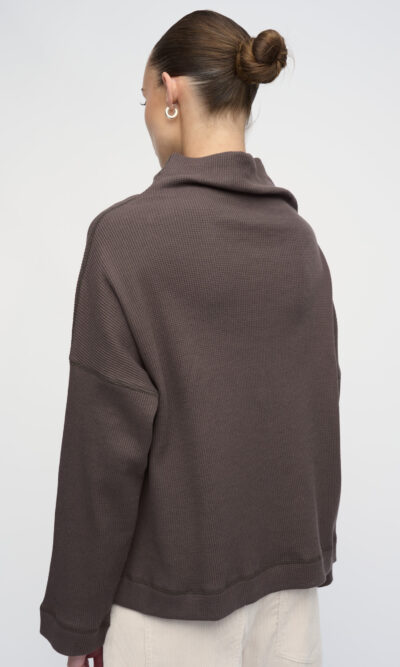 חולצת טי מסריג כותנה וואפל. צללית רחוקה מהגוף, עם צוארון גבוה.