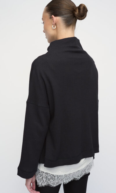 חולצת טי מסריג כותנה וואפל. צללית רחוקה מהגוף, עם צוארון גבוה.